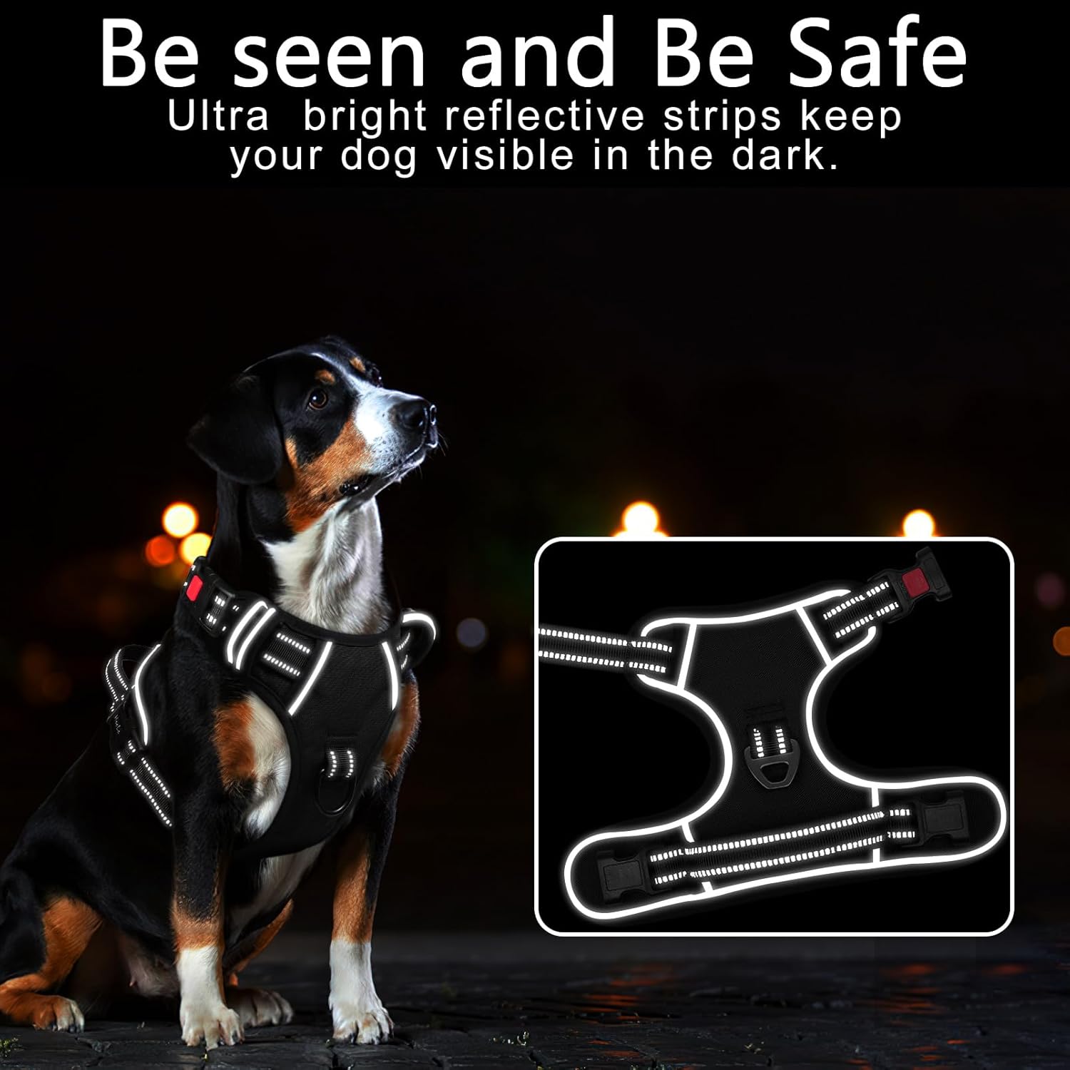 Timos Dog Harness, No-Pull Pet Harness with 2 Leash Clips, 3 Snap Buckles Adjustable Soft Padded Dog Vest, Reflective No-Choke Pet Oxford Vest with Easy Control Handle for Small Medium Large Dogs