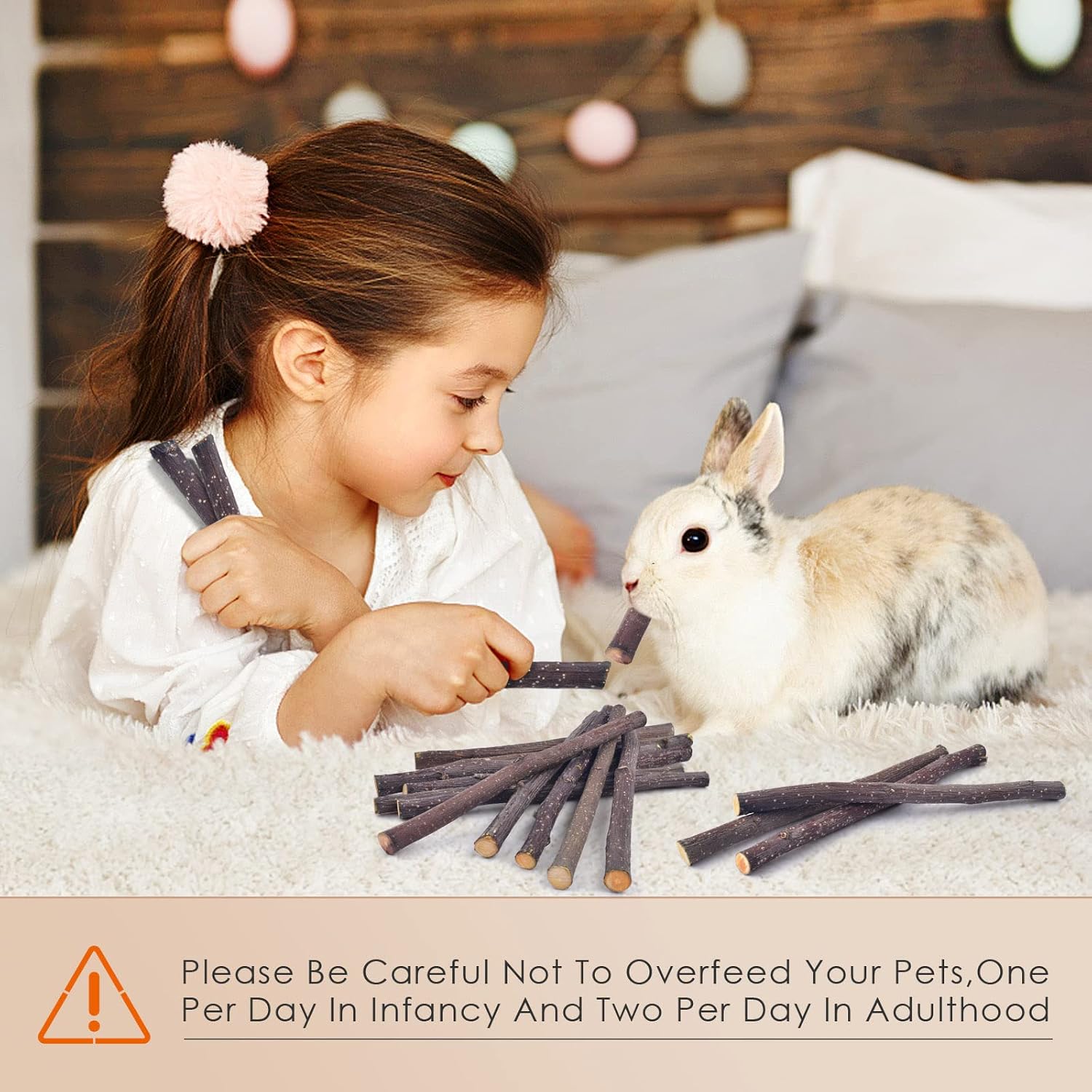 - Designed for Small Animals: Chew sticks are suitable for guinea pigs, chinchillas, squirrels, rabbits, parrots, hamsters, degus, gerbils and other rodents. Rabbit treats ​will provide hours of fun for your animal. Let the long-lost critters in the cage no longer be bored and anxious.