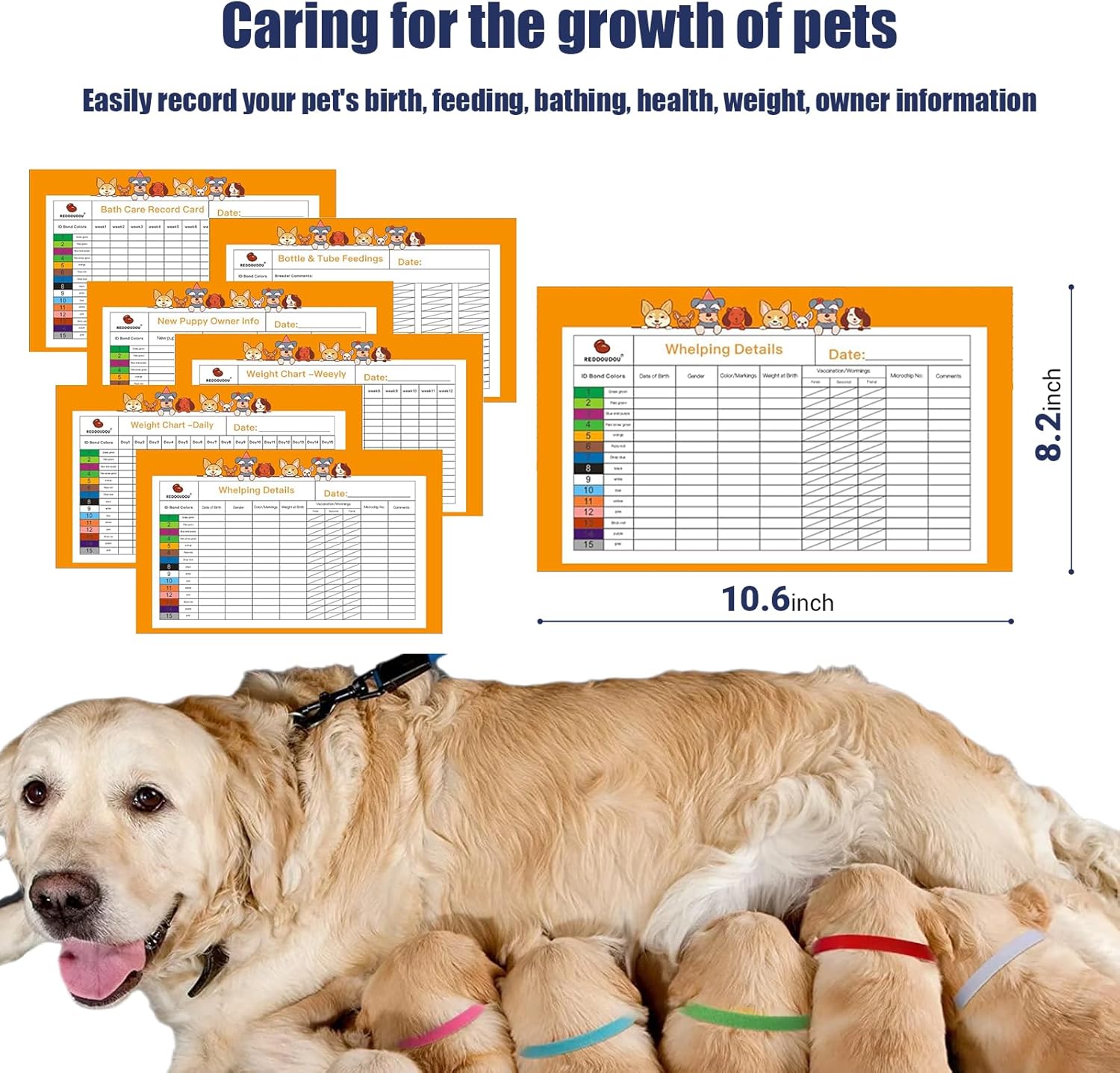 Puppy Kitten Whelping Kit, Newborn Dogs Cats Pet Whelping Kit with 6P Record Keeping Charts, 15P Pet ID Collars, 1P Aspirator Bulb, 15P Umbilical Cord Clip, 1P Hemostatic Forcep