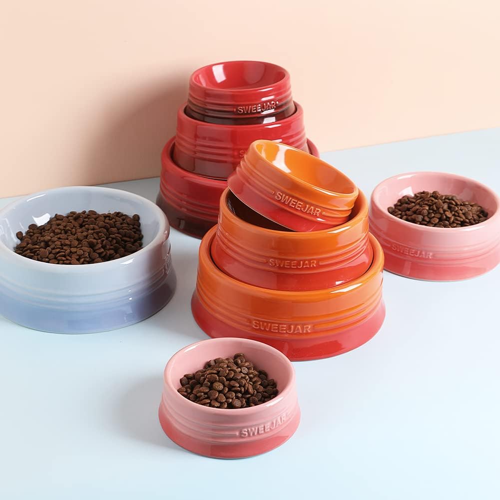 - Non Skidding - SWEEJAR dog bowls are made of food grade porcelain, microwave & dishwasher safe, easy to clean. The ceramic is heavy to help keep the bowl upright when dog eat food. No messy floors to clean.