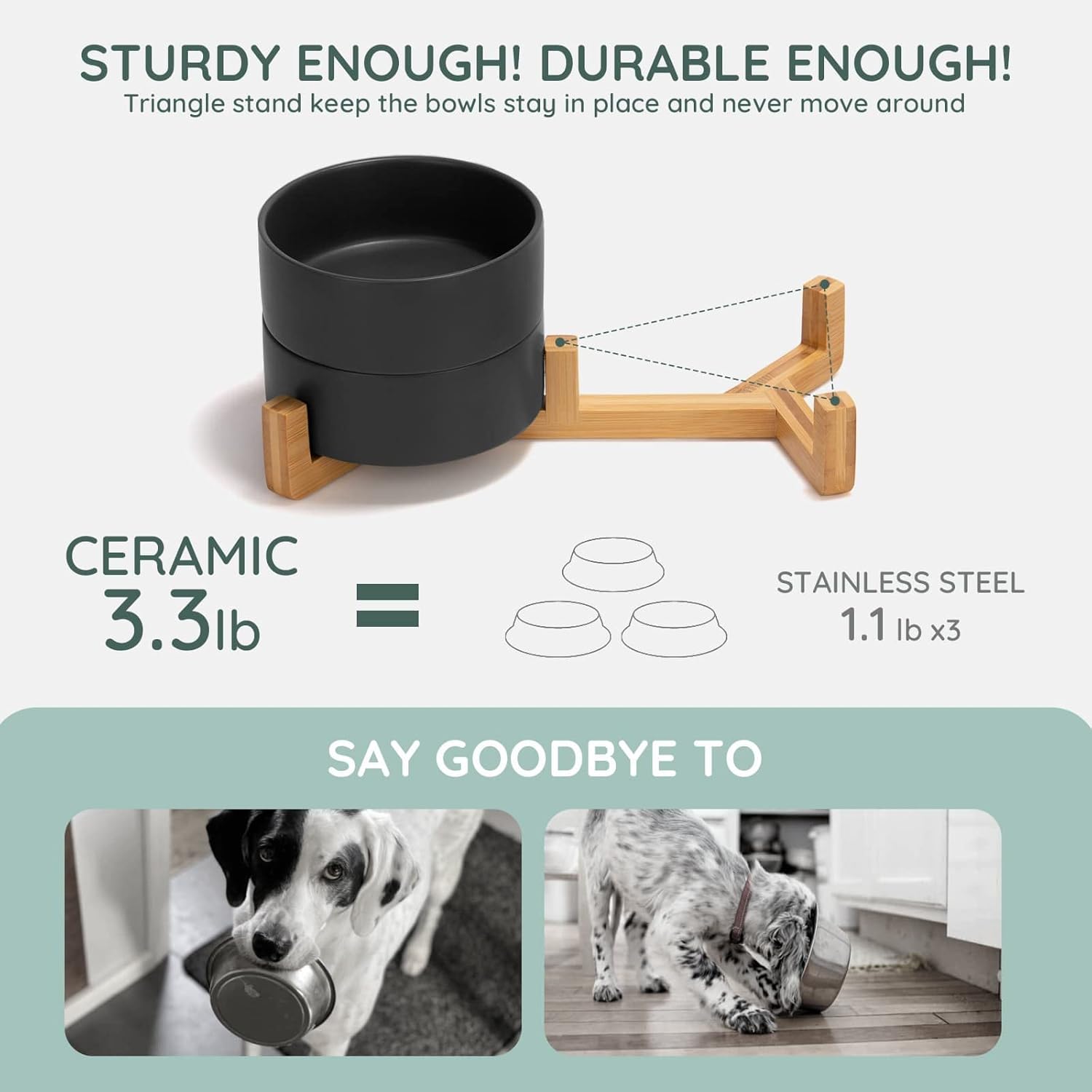 - [Double Bowl Design]:One dog bowl for food and one for water, Each ceramic cat bowl has a Unique wooden stand, raising the dishes closer to your pet for more comfortable eating