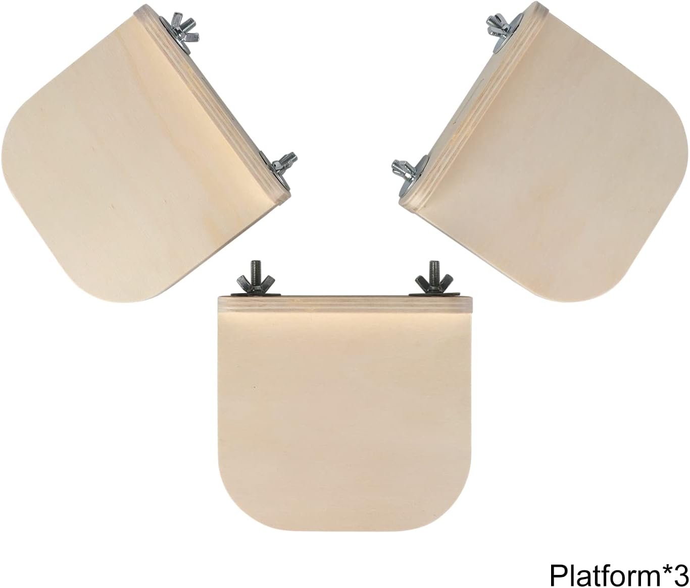 Chinchilla Wooden Platform Set, Chinchilla Cage Platform with Feeding Bowl, Small Animals Cage Accessories for Squirrel Gerbil Suger Glider Hamsters (3Pcs of Small Platform)
