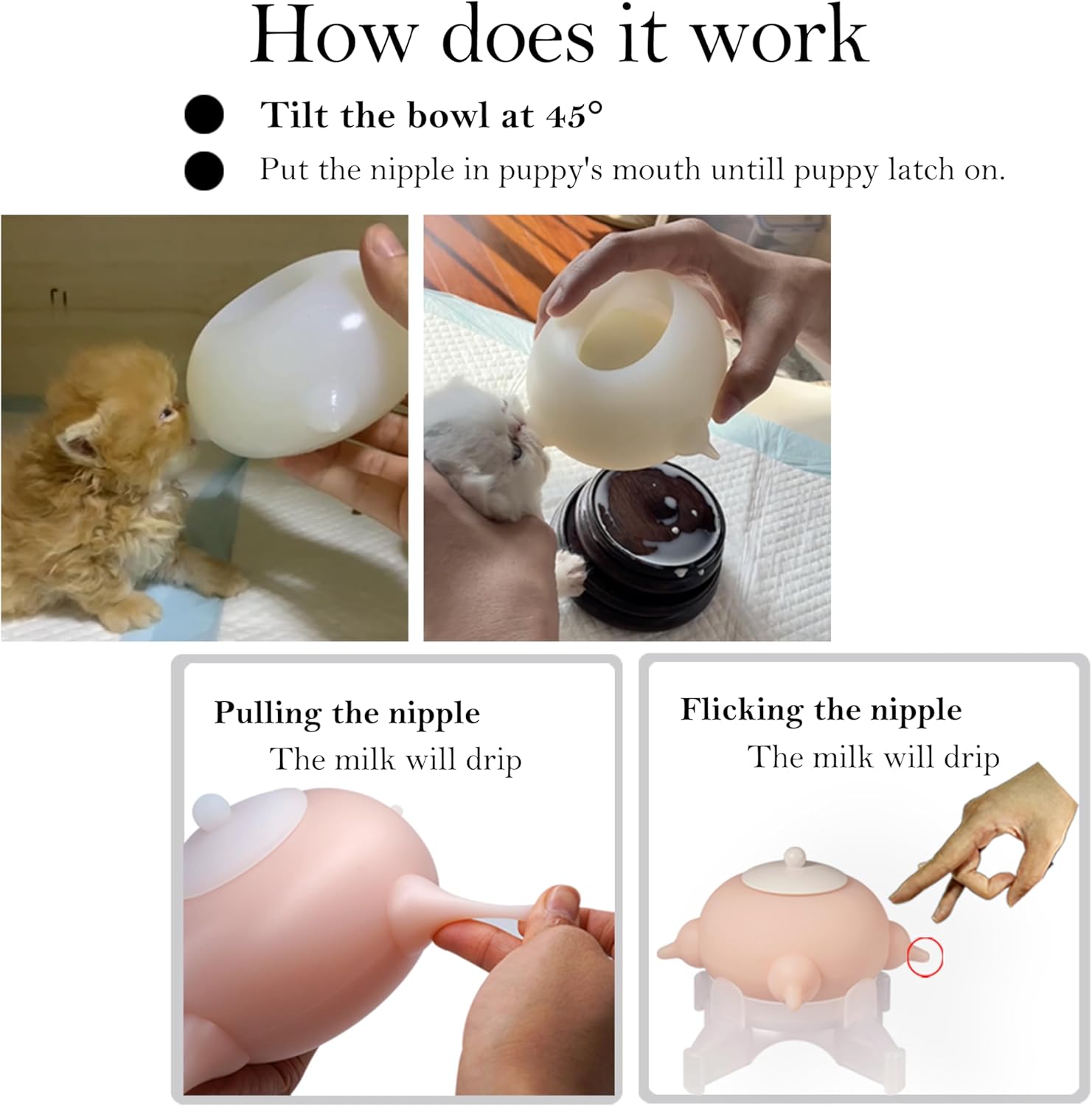 - Please note: This product is a new breastfeeding option. Please try several times according to the instructions when the pet baby is hungry (or try several times within a few days, and you will get satisfactory results in the end). Generally, they are willing to accept it. However, as each animal has different personalities and preferences, occasionally some pet babies may not like this product or accept artificial breastfeeding. Please switch to other feeding methods