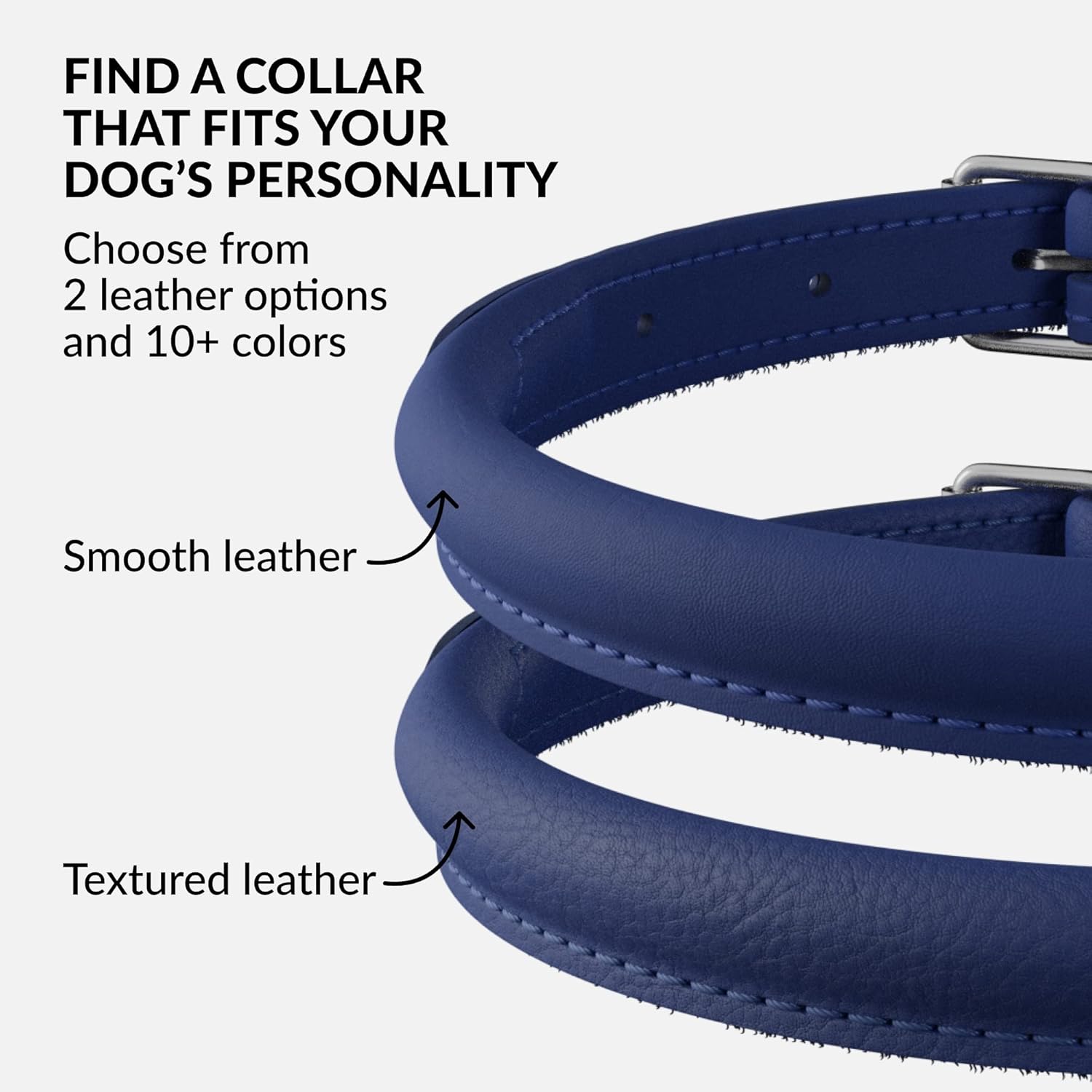 CollarDirect Rolled Leather Dog Collar, Soft Padded Round Puppy Collar, Handmade Genuine Leather Collar Dog Small Large Cat Collars 13 Colors (6 Inch, Deep Blue Smooth)