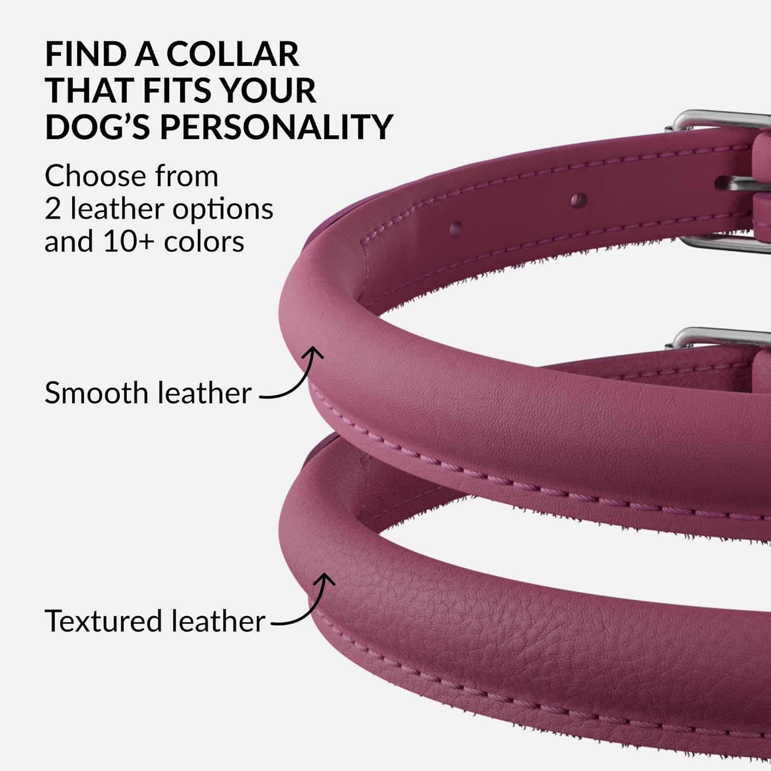 CollarDirect Rolled Leather Dog Collar, Soft Padded Round Puppy Collar, Handmade Genuine Leather Collar Dog Small Large Cat Collars 13 Colors (11-14 Inch, Pink Smooth)