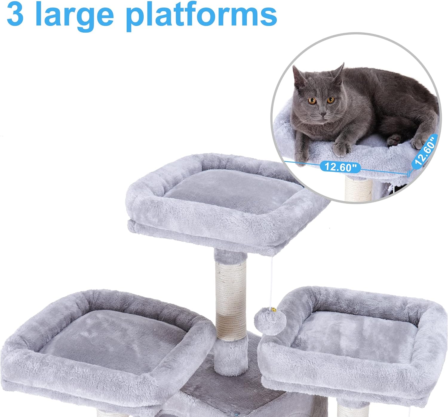 Hey-brother Cat Tree, 71 inches XL Large Cat Tower for Indoor Cats, Multi-Level Cat House with 3 Padded Perches, Big Scratcher, Cozy Basket, 2 Cat Condos and Scratching Posts, Light Gray MPJ034W