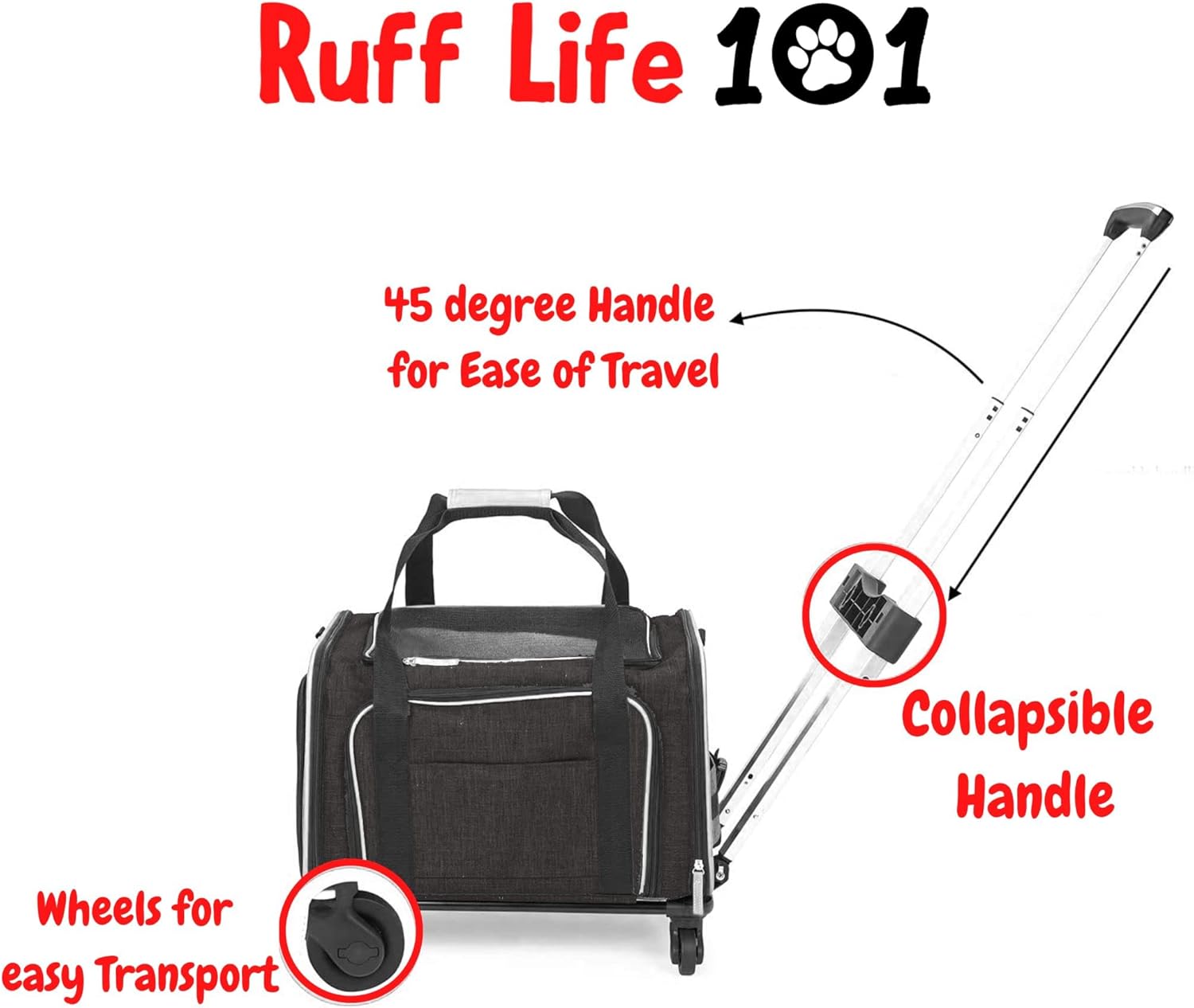Airline Approved Expandable Premium Pet Carrier on Wheels- Two Sided Rolling Carrier- Designed for Dogs & Cats- Extra Spacious Soft Lined Carrier! (Black) (RL-PET-CARRIER-WHEELS)