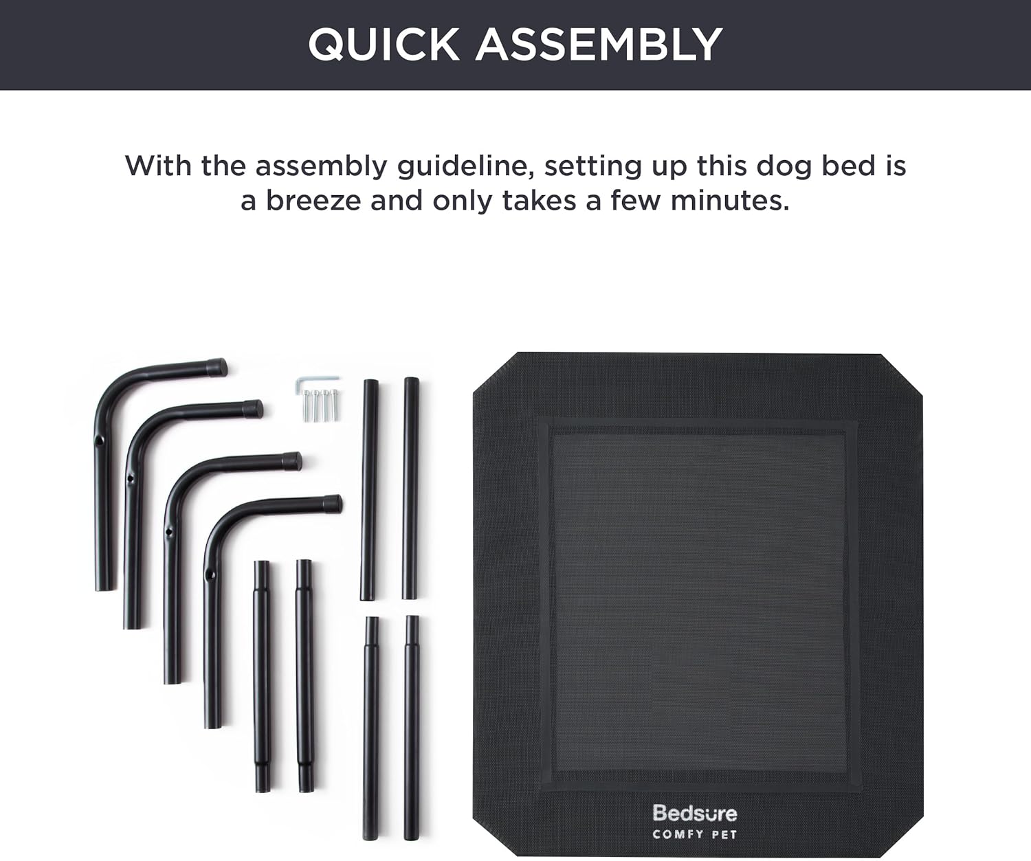 - Quick Assembly: Set up takes just a few minutes. The lightweight design of this elevated dog bed provides increased portability and makes travel simple.