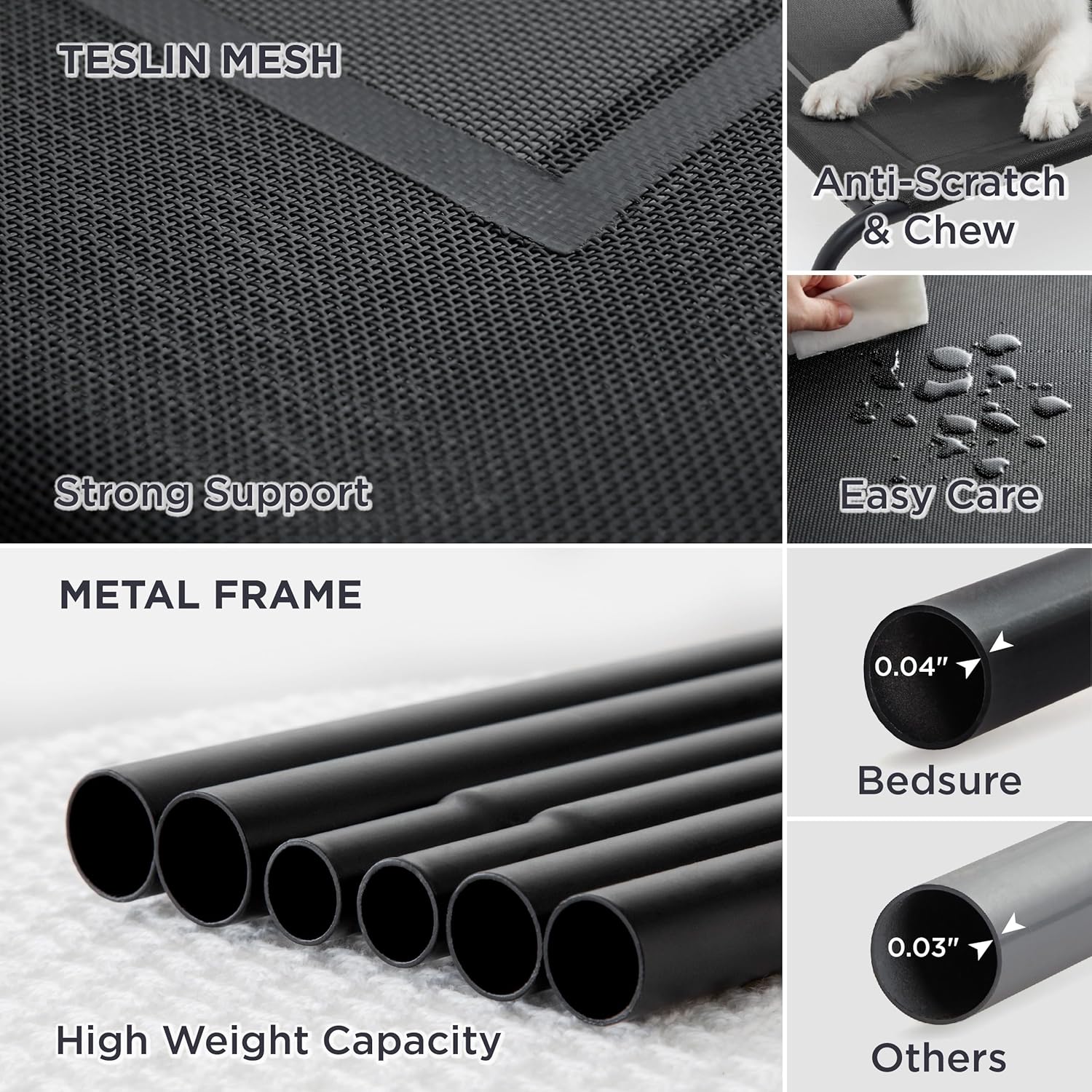 Bedsure Outdoor Elevated Dog Bed Large Sized Dog, Portable Indoor & Outdoor Cooling Raised Cot Pet Hammock Bed with Skid-Resistant Feet, Frame with Breathable Mesh, Black, 49 inches