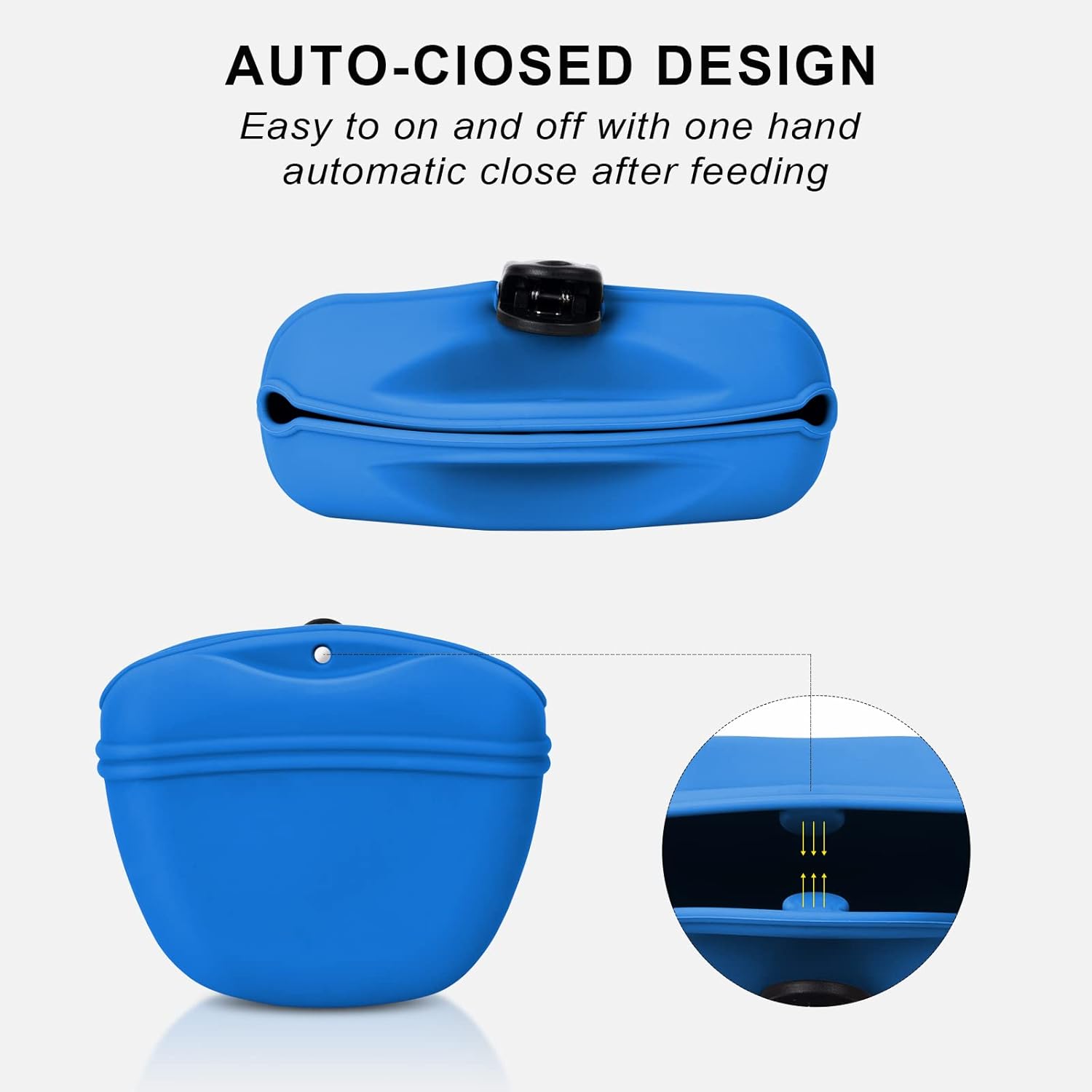 - 🐕Silicone Dog Treat Pouch🐕 - The silicone dog treat pouch is made of food grade silicone,it can contact dry and wet food directly,safe and healthy. It’s easy to on and off with one hand, automatic close after feeding.With upgrated clip,It is easy to carry,not easy to fall off.Dish washer safe and easy to clean,The large opening design and soft silicone material make the pet pouch easy to reverse to clean the inner easily and thoroughly.