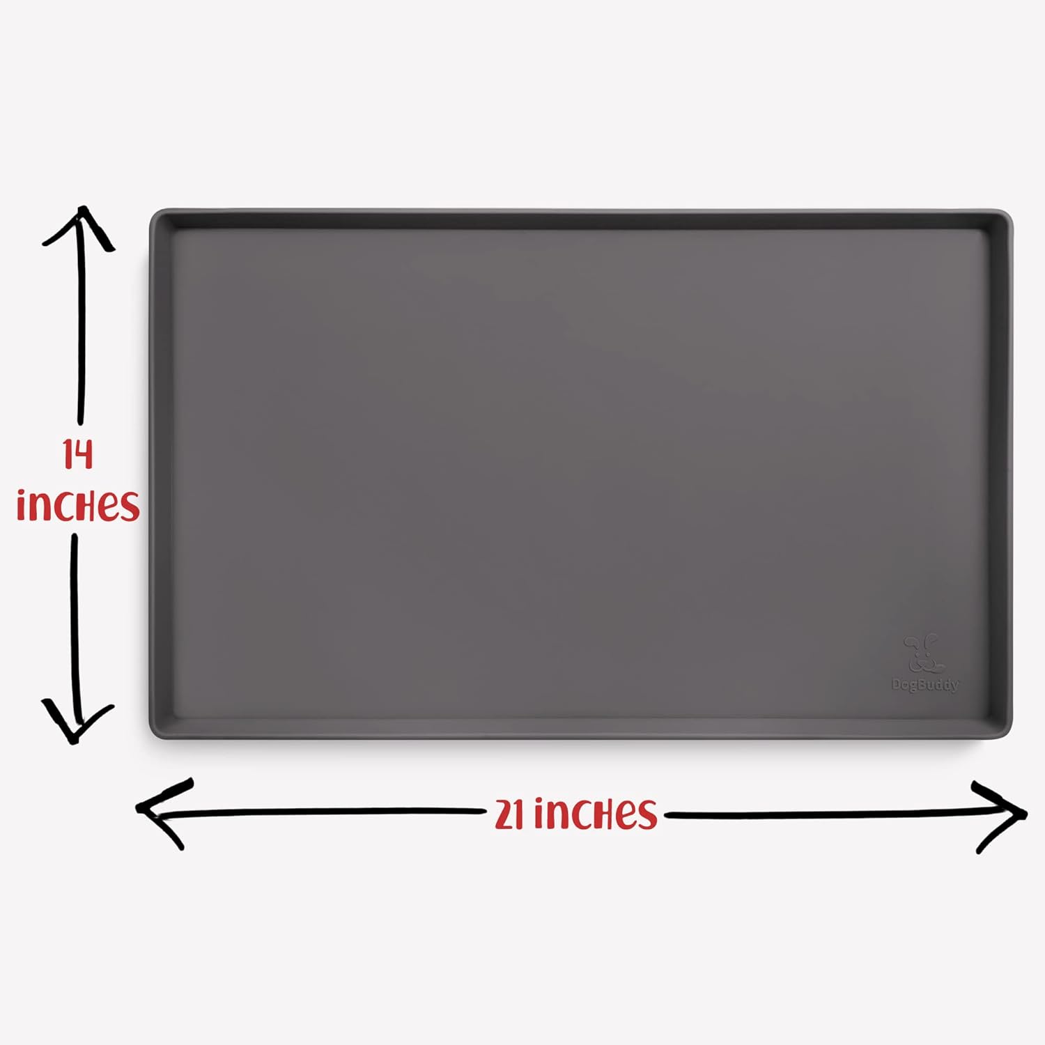 DogBuddy Dog Food Mat – Waterproof Dog Bowl Mat for Food and Water, Silicone Pet Feeding Mats for Floors, Non-Slip Placemat with High Edges for Dogs Bowls, Puppy Essentials (M: 21” x 14”, Shadow)