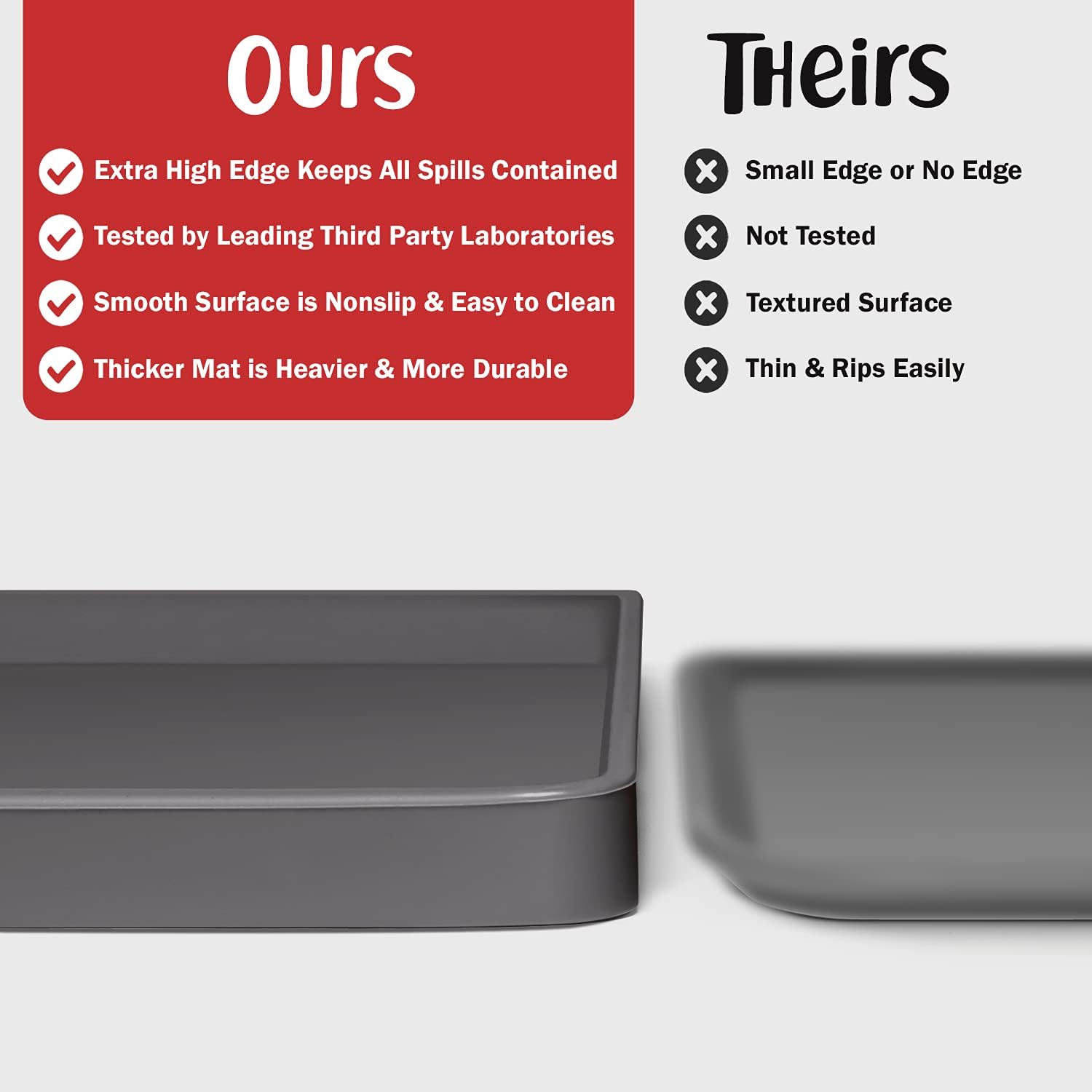 - Less Mess & Less Stress: Super high edge (0.6”) of DogBuddy Dog Food Mat keeps the spilled food and water on the mat and away from your beautiful floor. Silicone is naturally 100% waterproof, so what happens on the mat stays on the mat.