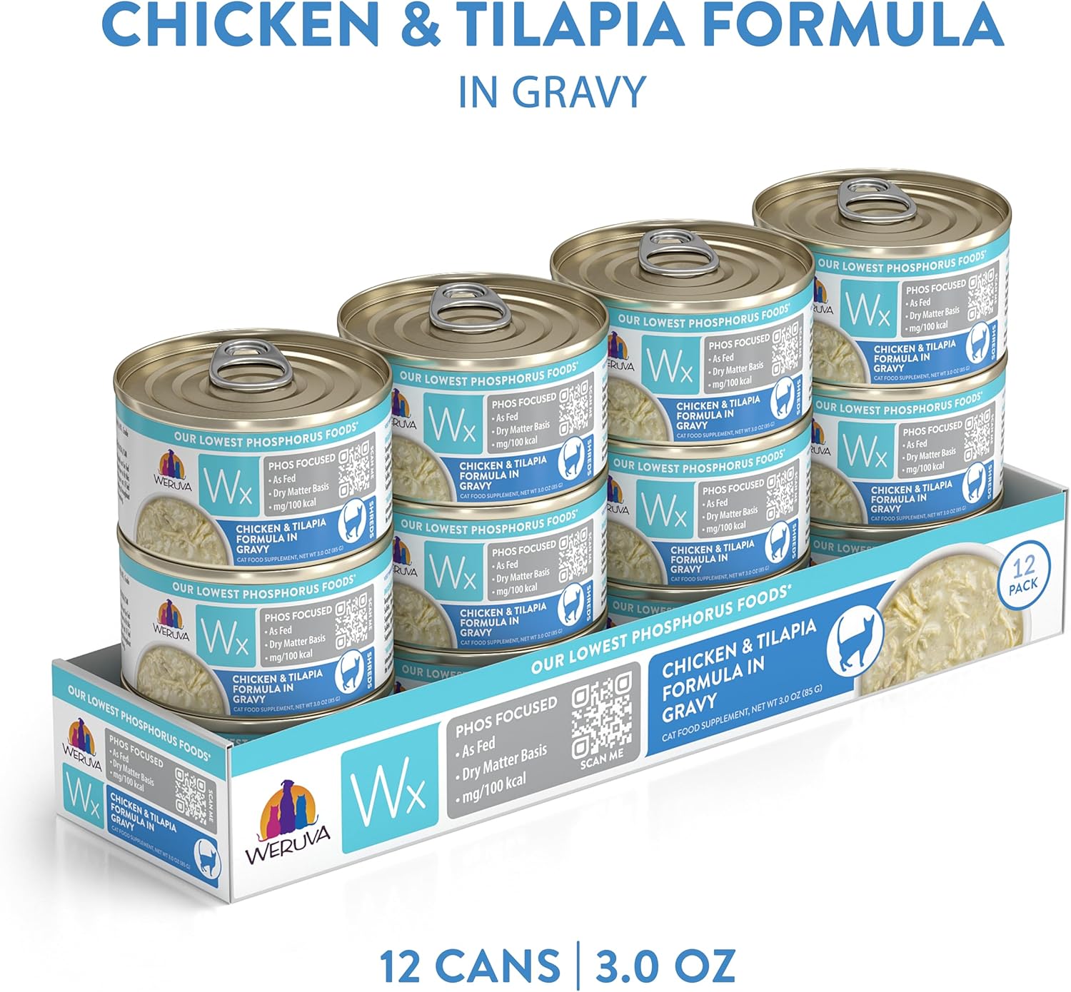 - Wx Phos Focused,, Chicken & Tilapia Formula in Gravy, 3oz Can (Pack of 12)