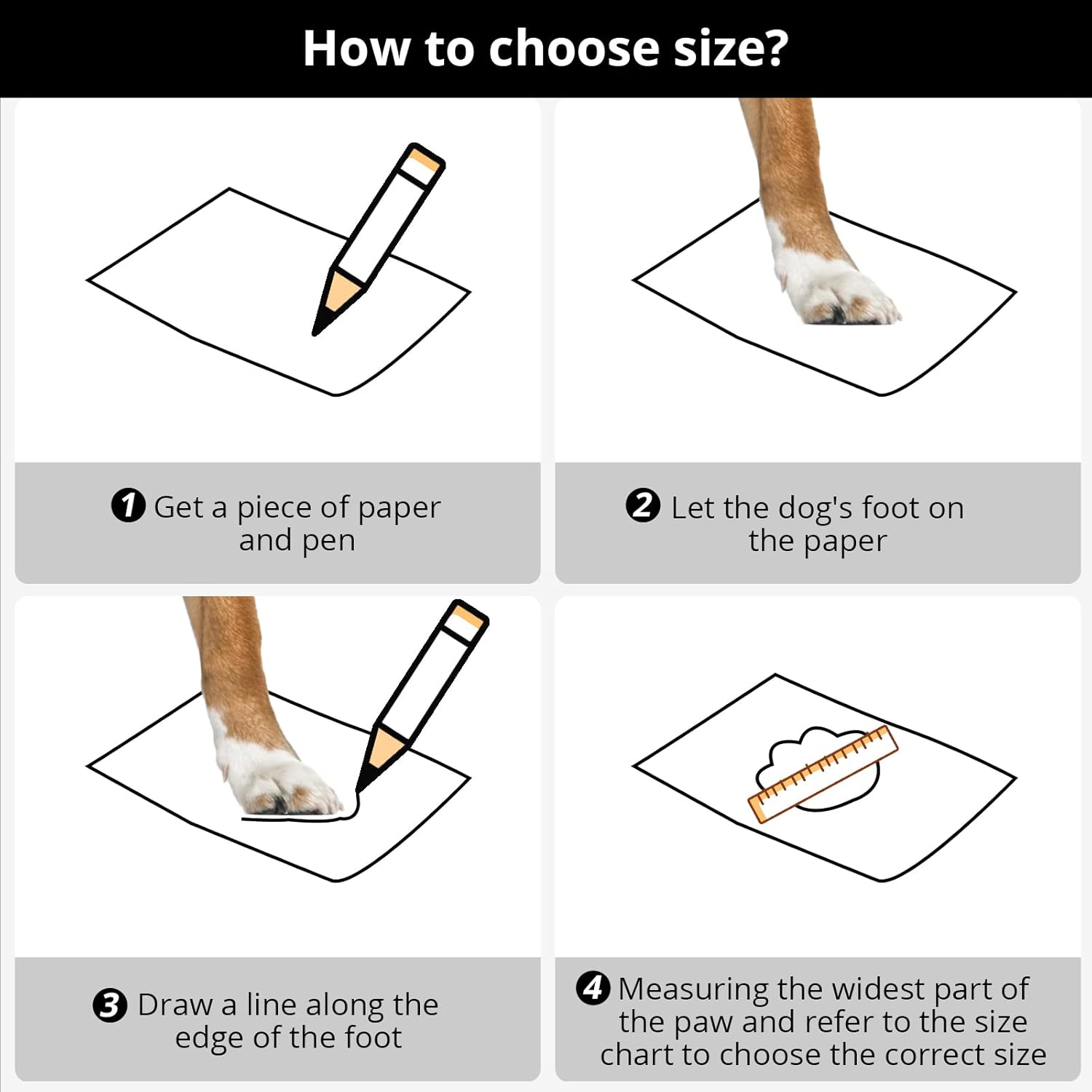 - 【Size 1】: 1.57''x1.77''(W*L).for 12-17lbs.Great for all kinds of dogs.Place your pet's paws on paper; Mark the width of the paws, including the toes and nails,Except for the hair;Please refer to the picture size chart to choose the right size for your puppy.