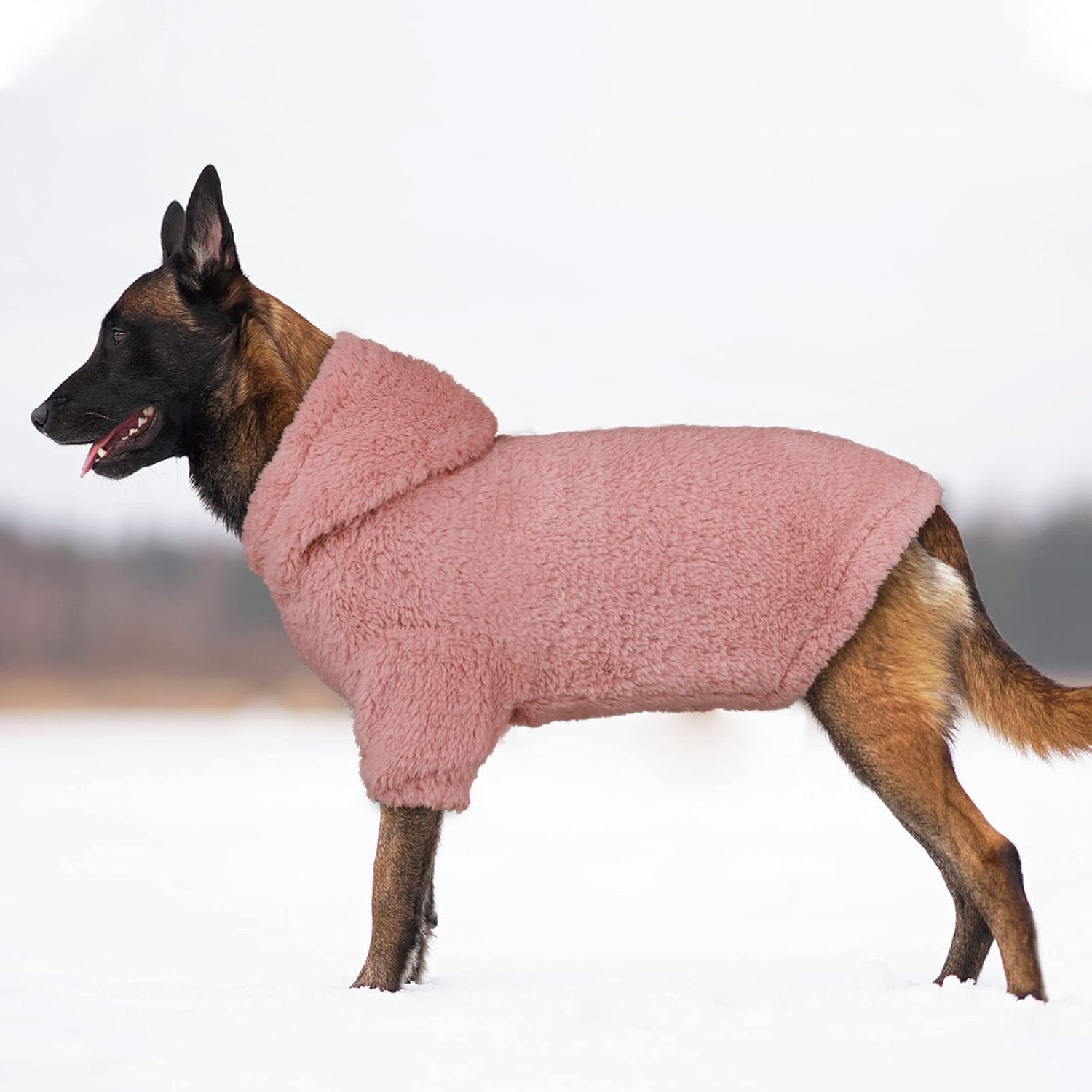- 【Both Side Plush Fleece】100% Polyester, Fuzzy sherpa fleece material, super warm and soft enough, breathable, cozy, skin-friendly with great stretch, this dog hoodie will definitely keep your dog warm all day. Our dog hoodie is a must have for cold days.