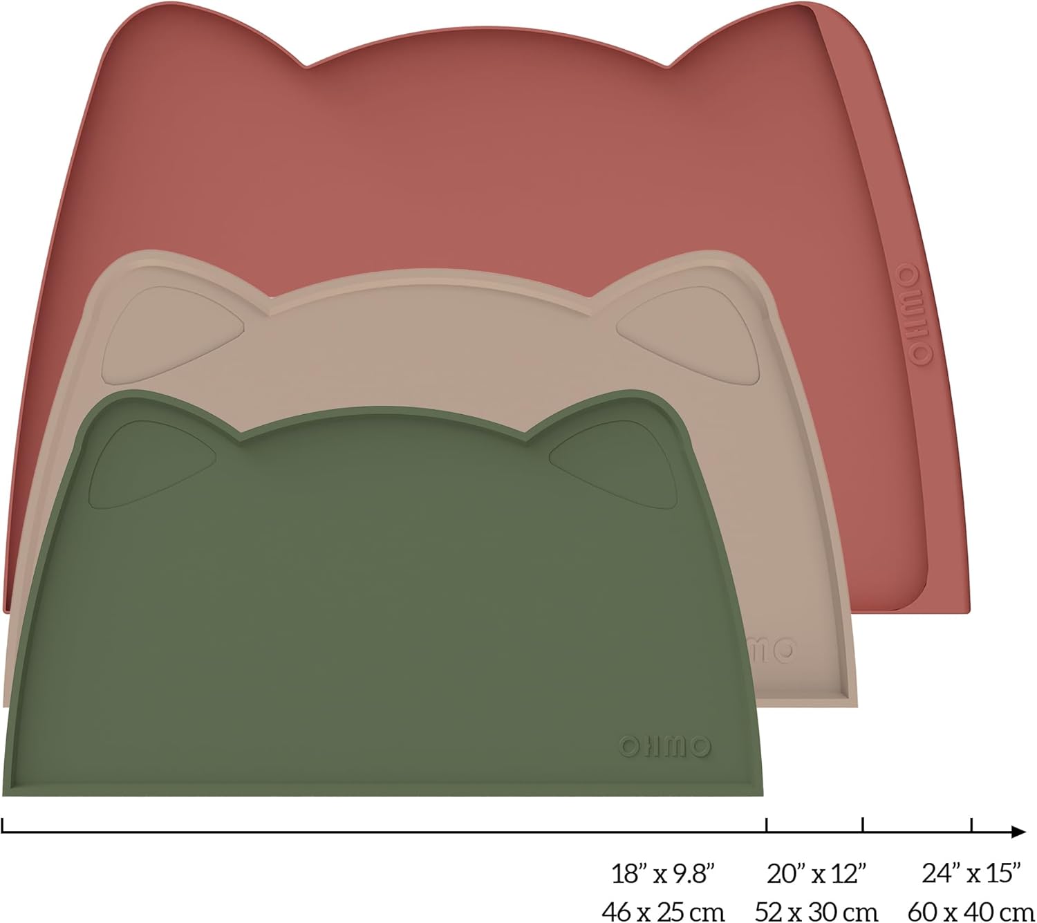 OHMO - Cat Food Mat, Silicone Pet Feeding Mat for Floor Non-Skid Waterproof Dog Water Bowl Tray, Easy to Clean Pet Placemat (Camo Green, 18 * 9.8'')