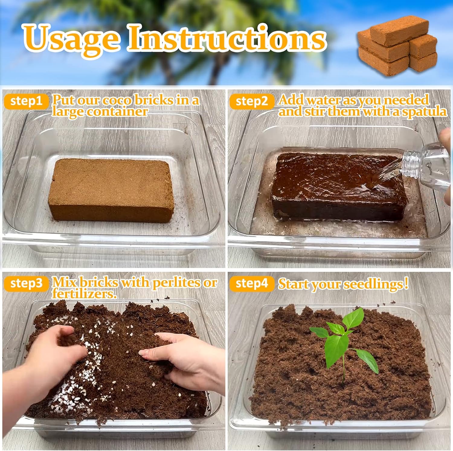 - Organic Coco Coir Bricks: Like to garden? Get this. Awesome coconut peat brick will promotes healthy root growth! These seed starter soil are lightweight and absorbent, easy to manage even for garden beginners. No problems with overwatering and rotton root, making your garden soil lighter and keeping it moist longer