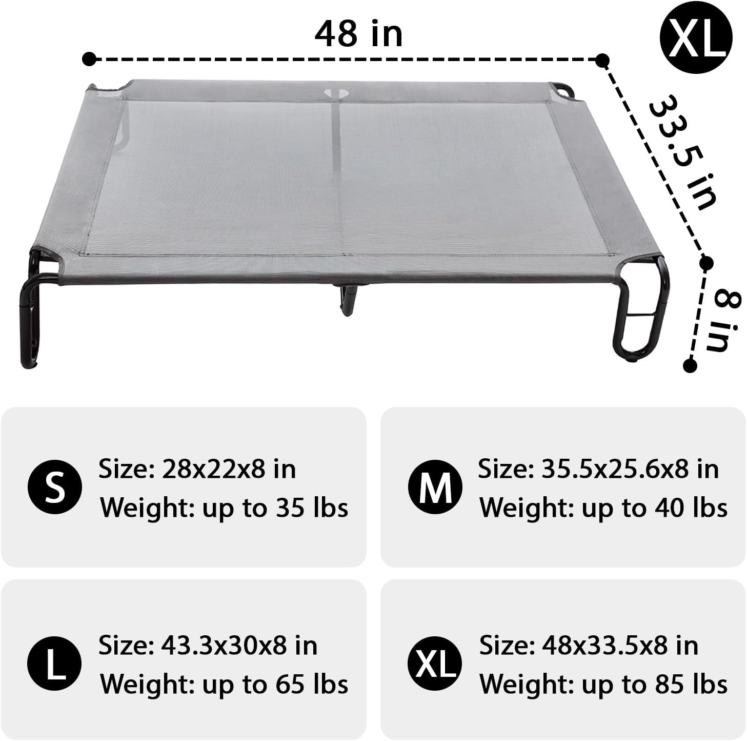 pettycare Elevated Outdoor Dog Bed - Dog Cots beds for Large Dogs XL, Waterproof Raised Dog Bed Easy to Assemble, Cooling Elevated Dog Bed with Teslin Mesh, Durable, Non Slip, Up to 85 lbs,Grey