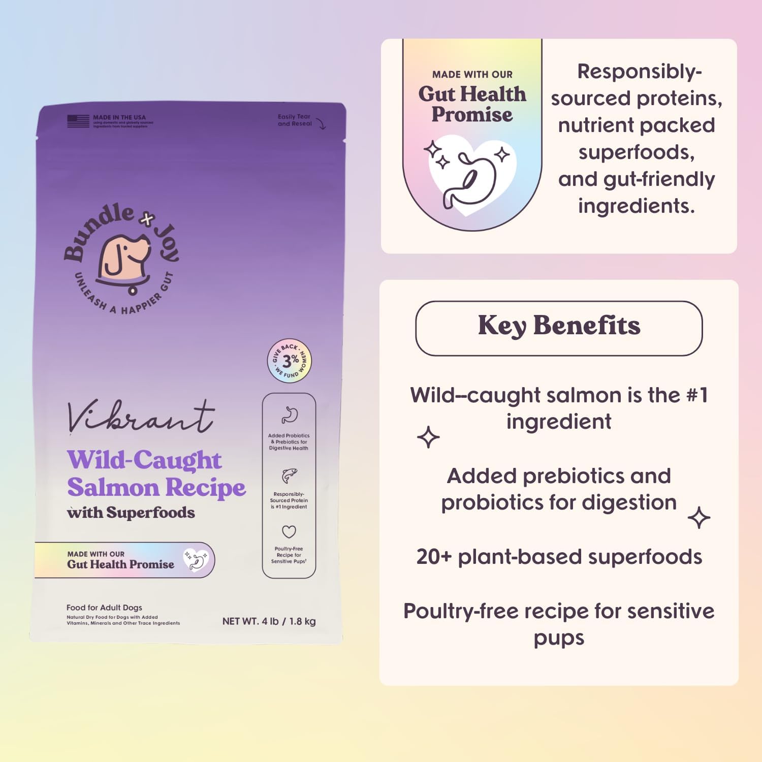 Bundle x Joy Vibrant Probiotic Dog Food Dry, Salmon, 18lb Bag, Allergy and Gut-Friendly Adult Kibble for Digestive Health with Wild-Caught Salmon, 20 Plant Based Superfoods, Grain x Poultry Free