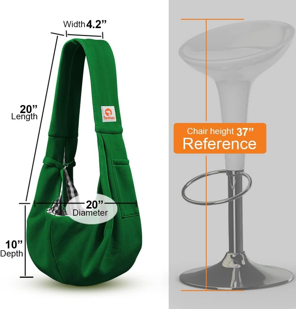 Tomkas Small Dog Sling Carrier - Classic Pocket & Classic Strap - for 3-10 lbs Pets(Emerald Green)
