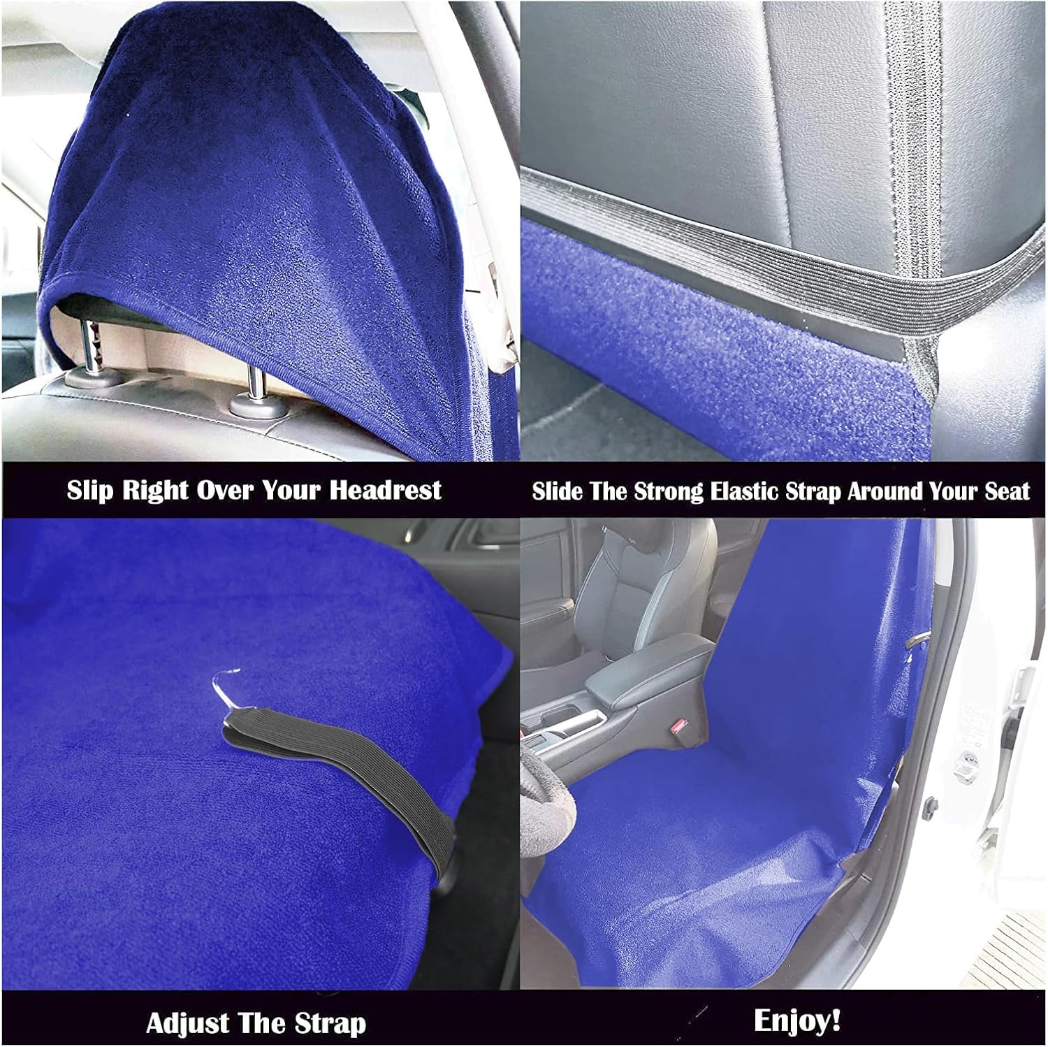 - Perfect Size: Our car seat towel with large, full coverage design measured at 29.5”wide x 56" long will protect your whole seat comfortably. Our adjustable elastic strap seat protector is designed to fit most vehicle seats snugly.