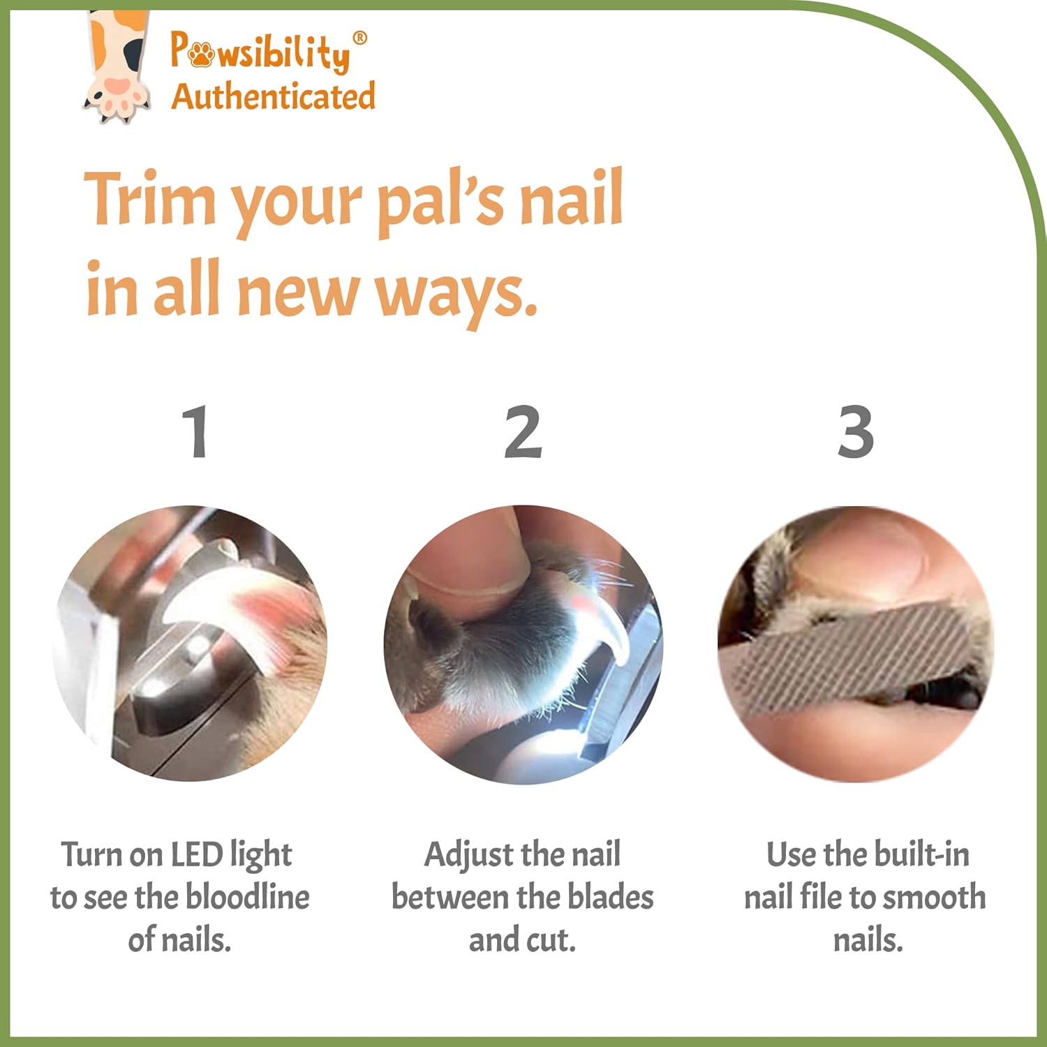 - ๐๐๐ ๐๐ข๐ ๐ก๐ญ: LED light powered by rechargeable battery illuminates the bloodline in nails and claws for easier and safer cutting experience! Note: LED light may have less illumination effects on dark and black nails.
