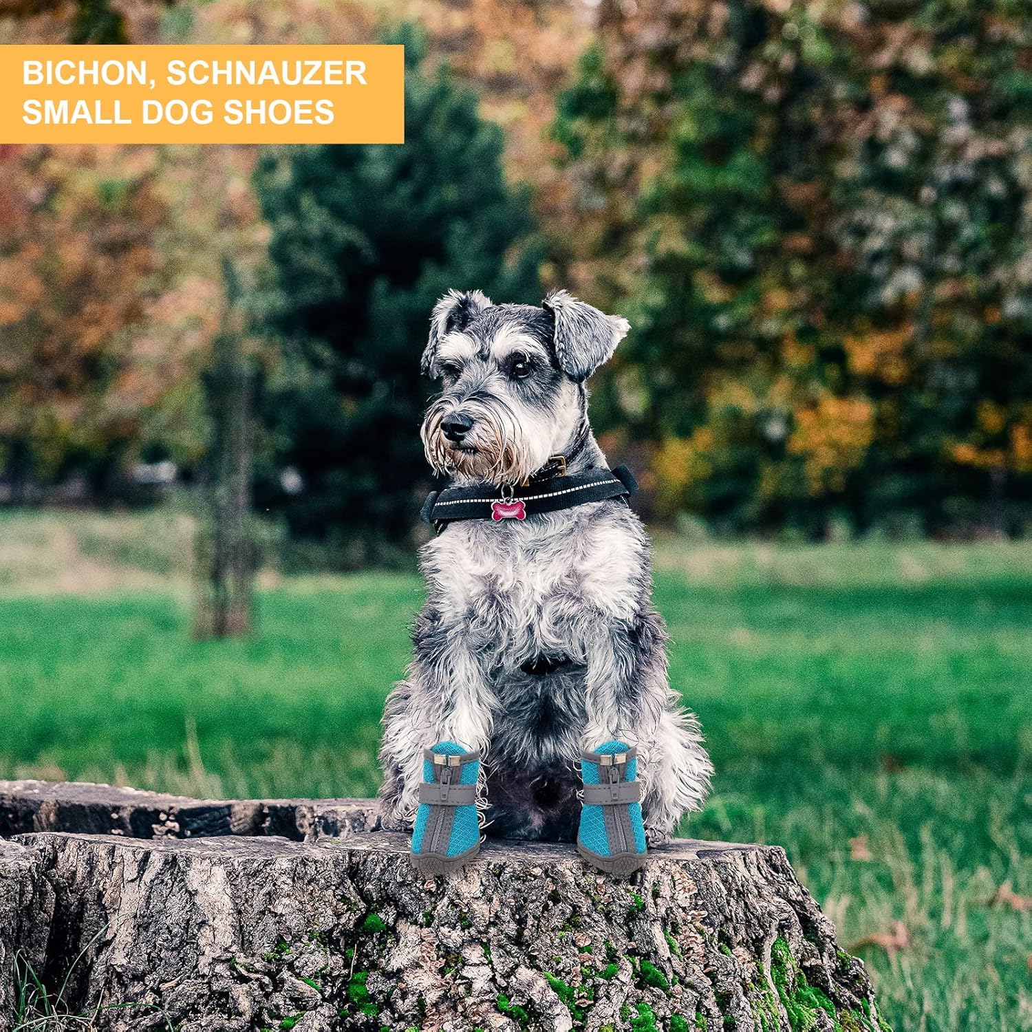 Dog Shoes for Small Dogs, Puppy Dog Boots & Paw Protector for Winter Snow Day, Summer Hot Pavement, Waterproof in Rain Weather, Ourdoor Hiking, Indoor Hardfloors with Anti Slip Sole 4PCS/Set