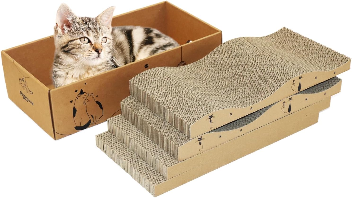 - High Quality and Safety: The paper card made in USA is used in the outer scratch box.The scratching board is made of 100% recyclable corrugated paper.Friendly to cats with no adverse effects.