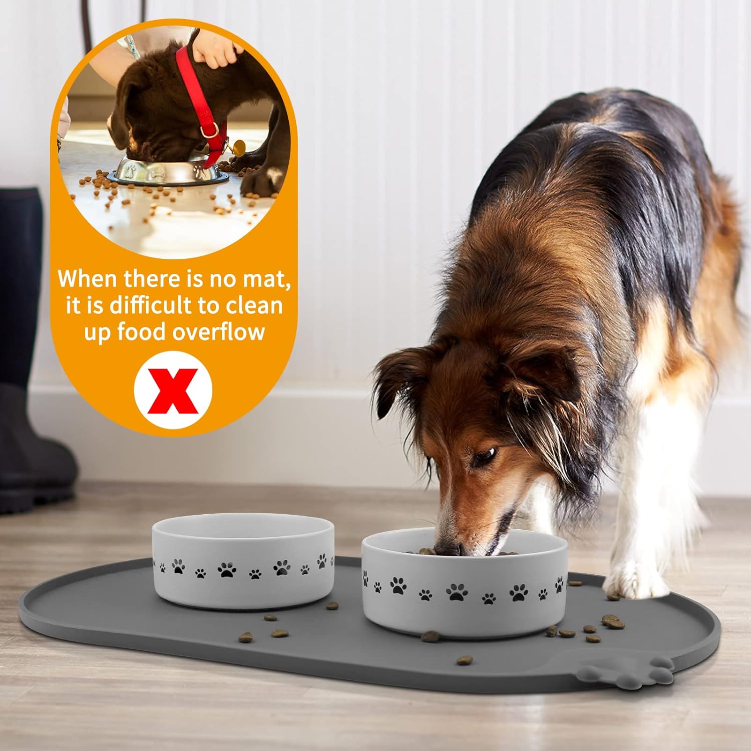 - 100% Waterproof and Anti-Slip: Our dog bowl mat with high-lip edges. Leak-proof pet placemats can prevent food and water overflow, and protect the floor. Prevent pets from eating contaminated food. Non-slip silicone mat keeps the bowl in place.