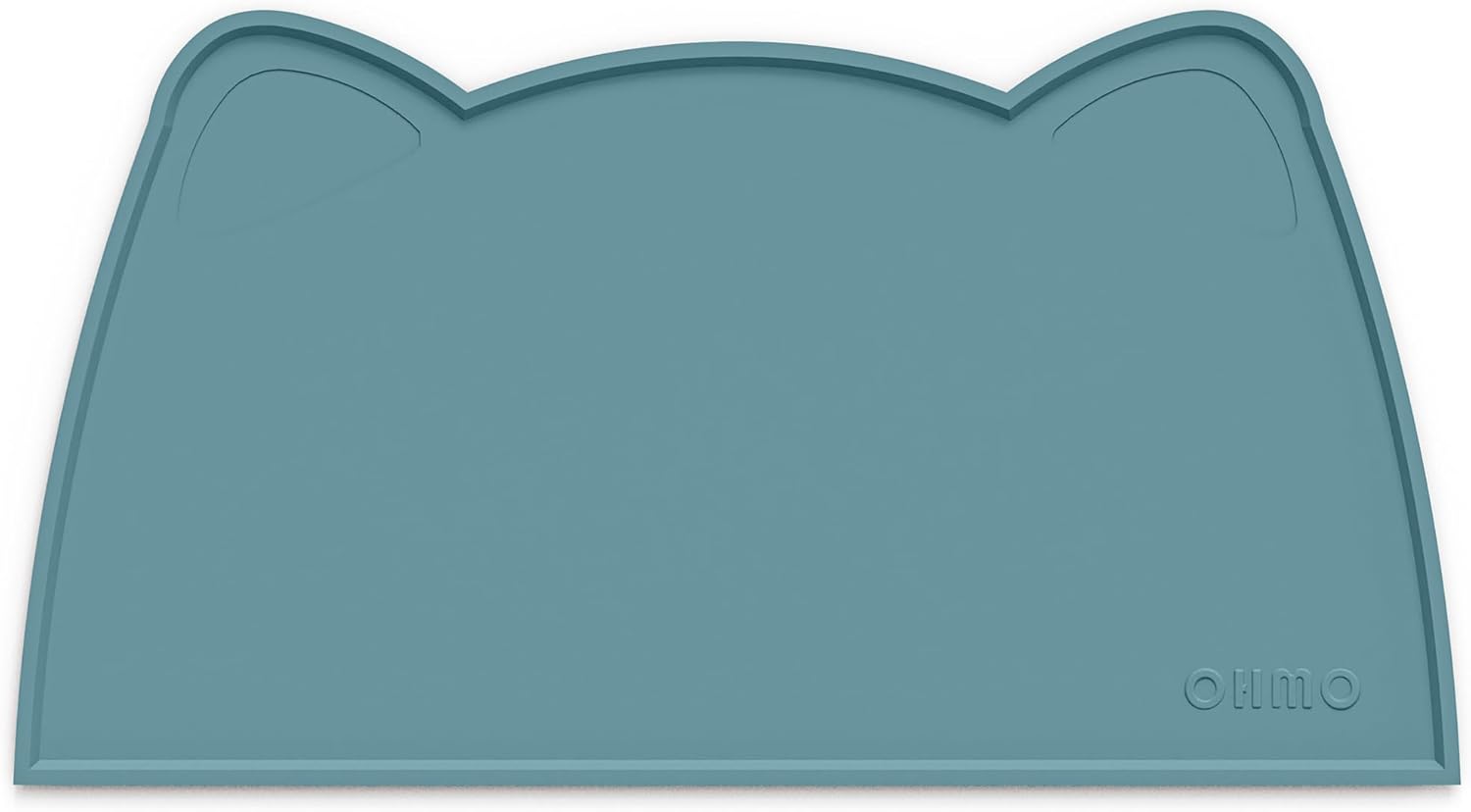 OHMO - Cat Food Mat, Silicone Pet Feeding Mat for Floor Non-Skid Waterproof Dog Water Bowl Tray, Easy to Clean Pet Placemat (Light Blue, 18 * 9.8'')