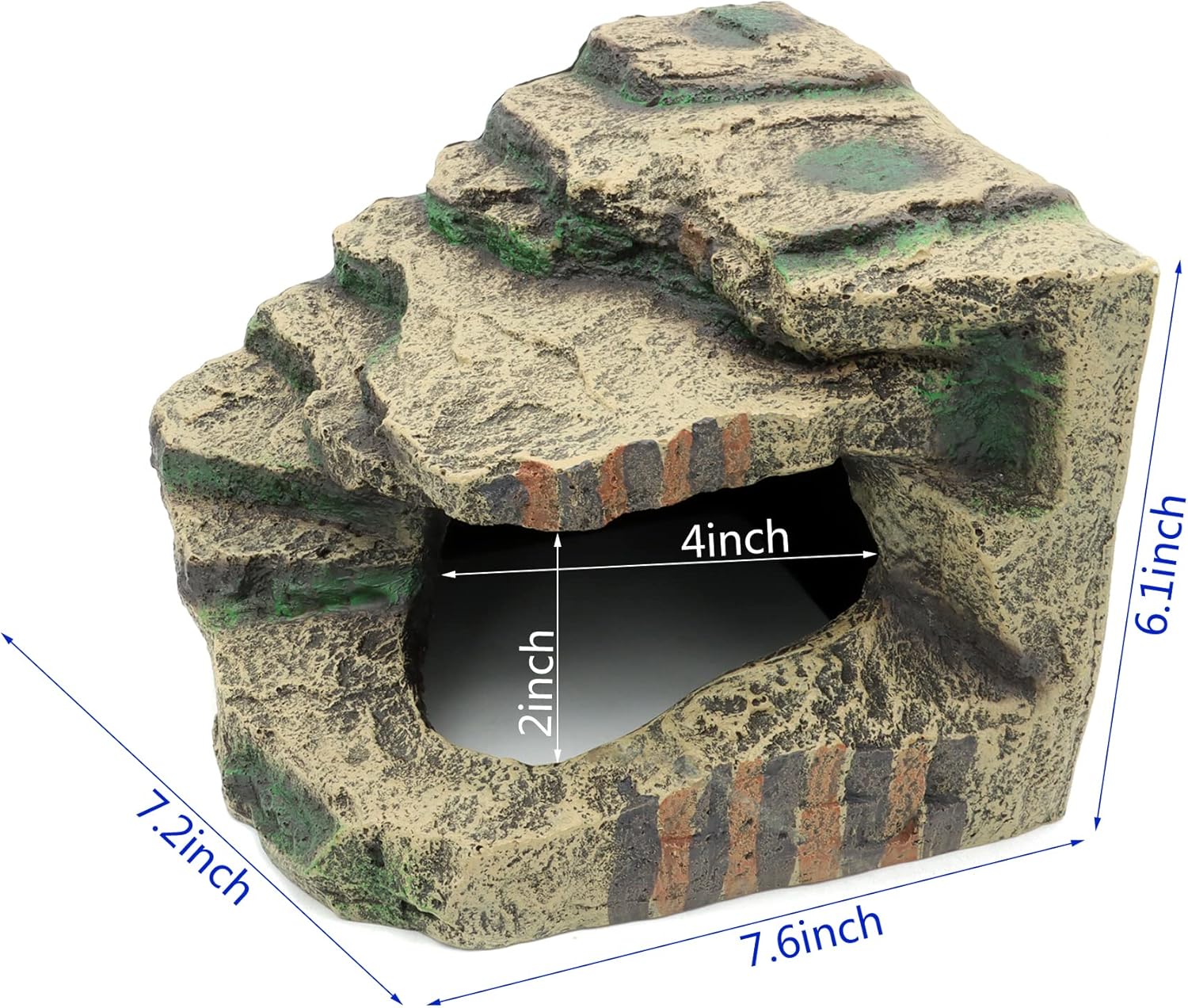 JIHAQUA Large Resin Reptile Tank Accessories Hideouts Cave Habitat Decor for Leopard Gecko Lizards Turtle