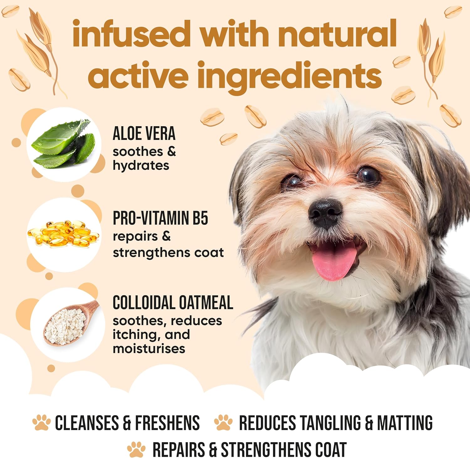 Oatmeal Dog Shampoo for Smelly Dogs (16.90oz) - Hypoallergenic & Itch Relief Formula, Gentle on Sensitive Skin, Includes Dog Shampoo and Conditioner - Essential Dog Grooming Supplies