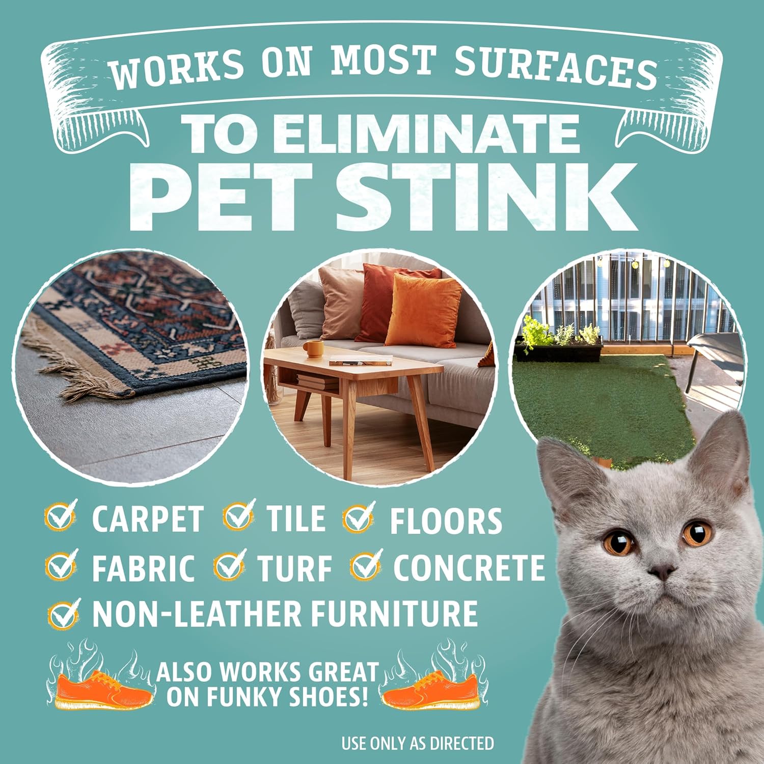 - MULTIPURPOSE - Can be used to eliminate odors from carpet, tile, couch upholstery, garbage cans, car interiors, turf, and more.