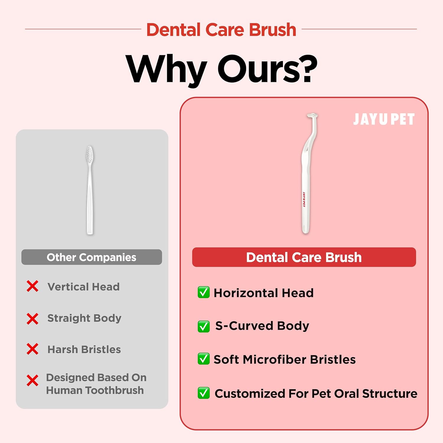- Perfect Tartar Removal - Our ergonomic fit horizontal toothbrush is suitable for sharp & curved teeth and weaker gum. More effective using with JAYU PET Dental Gel.