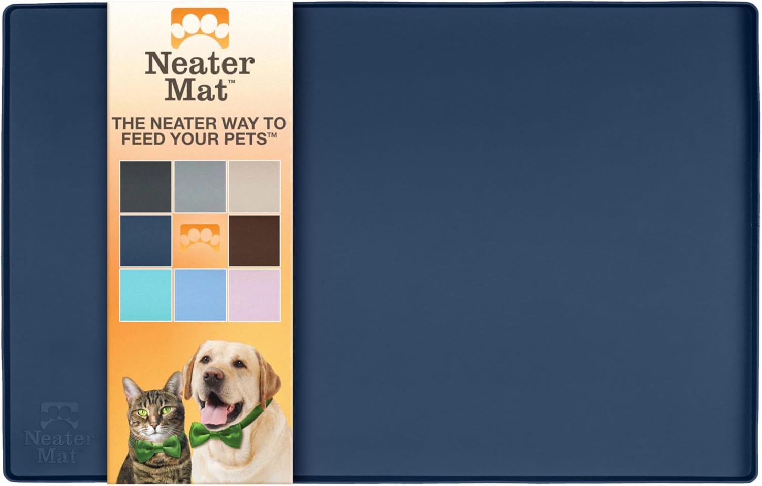 Neater Pet Brands Neater Mat Pet Mats for Food and Water, Cat & Dog Bowl Mat Waterproof Silicone, Feeding Tray, Dog Food Mats for Floors, Placemat w/Raised Edge for Under Bowls, 19” x 12”, Dark Blue