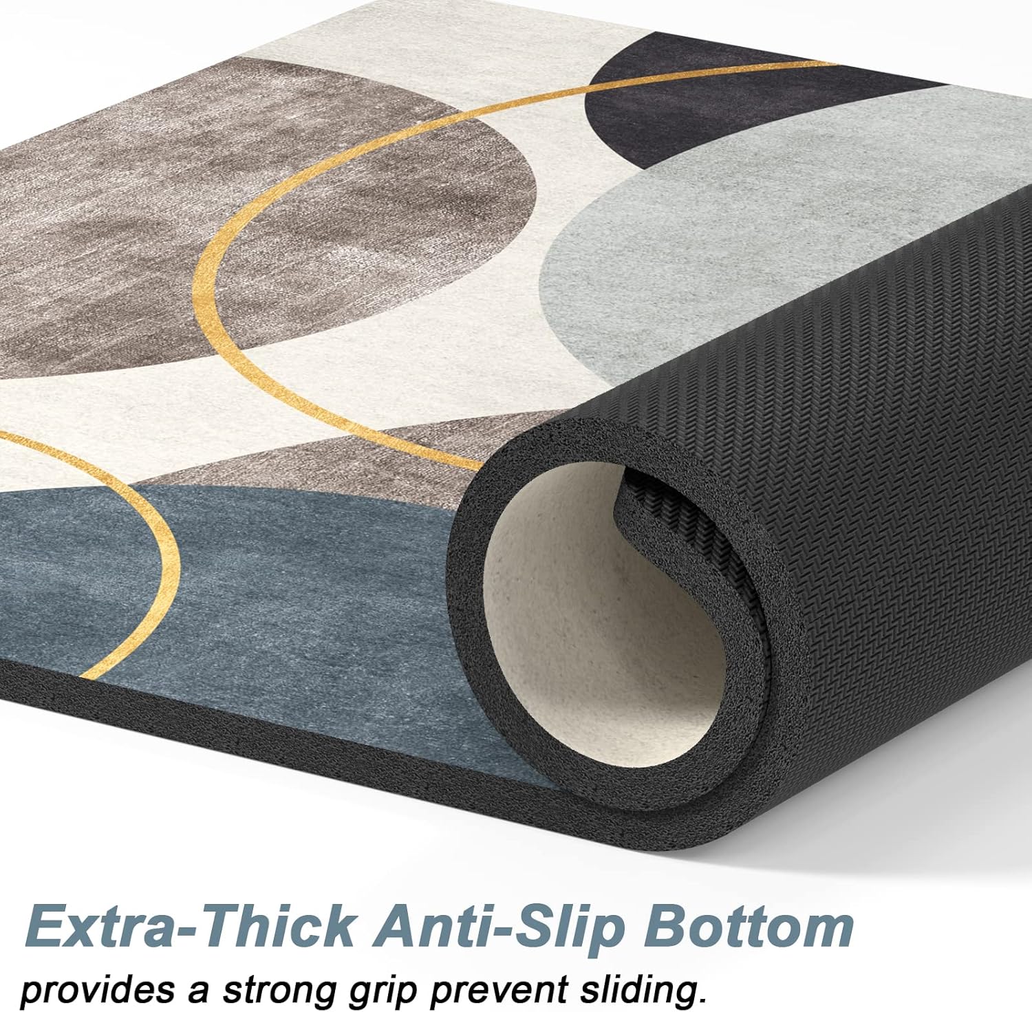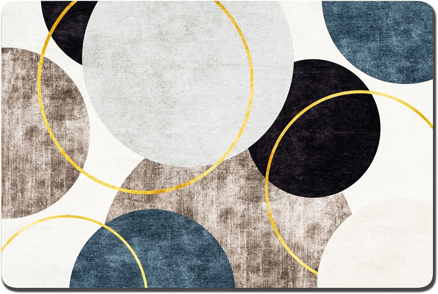 Rnivvi Dog Food Mat, 12" x 19" Boho Absorbent Dog Cat Bowl Mat for Food and Water, Cute Anti-Slip Rubber Pet Feeding Rug Protect Floors, Puppy Placemat for Feeding & Watering Supplies, Abstract Circle