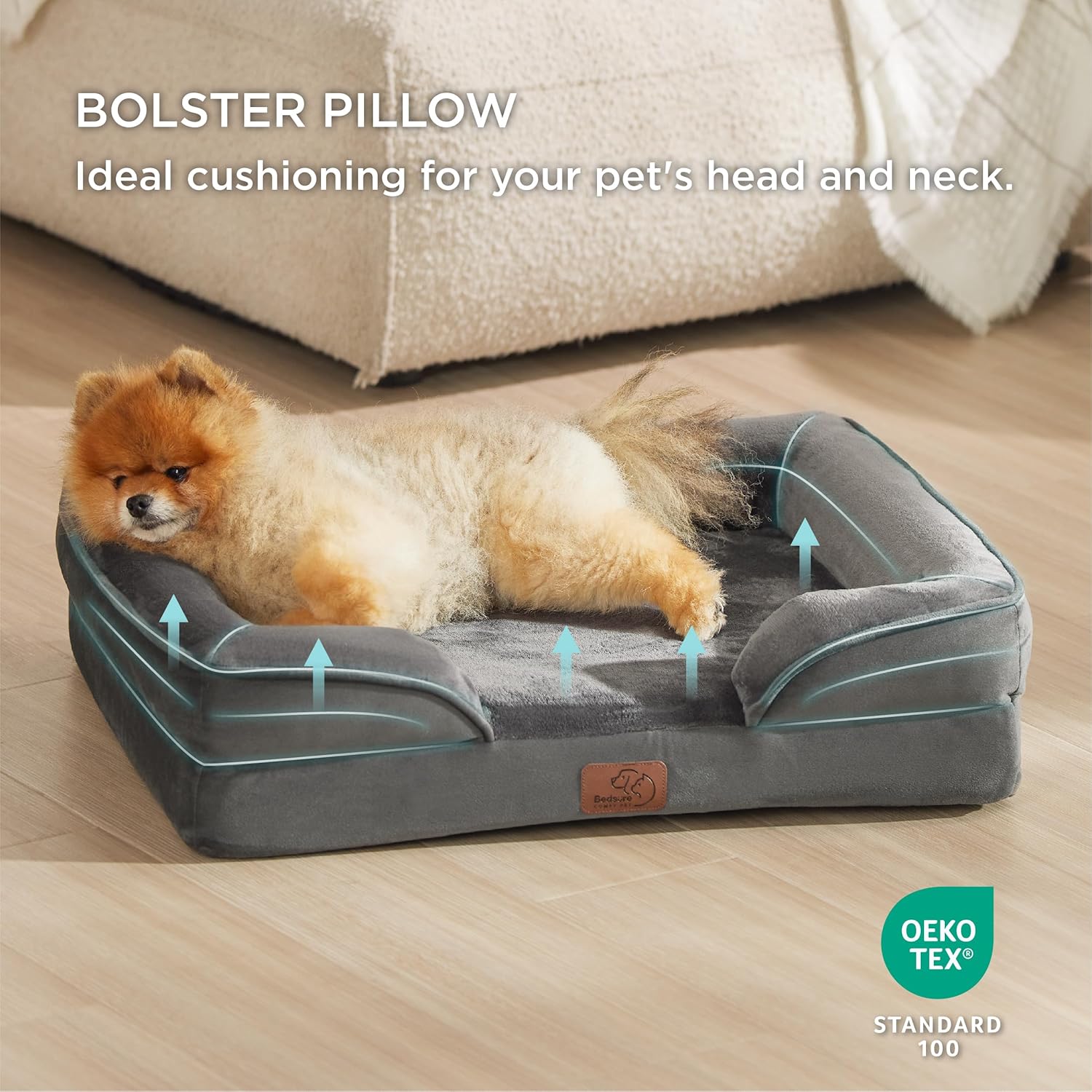 Bedsure Small Orthopedic Dog Bed - Washable Bolster Dog Sofa Beds for Small Dogs, Supportive Foam Pet Couch Bed with Removable Washable Cover, Waterproof Lining and Nonskid Bottom Couch, Dark Grey