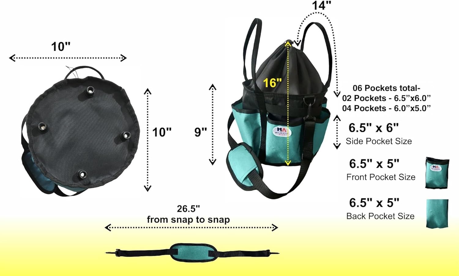 - 6 outside pockets to keep your horse or dog grooming accessories organized and secure. This tote is large enough to fit all your brushes and other necessary items like medicine etc organized.