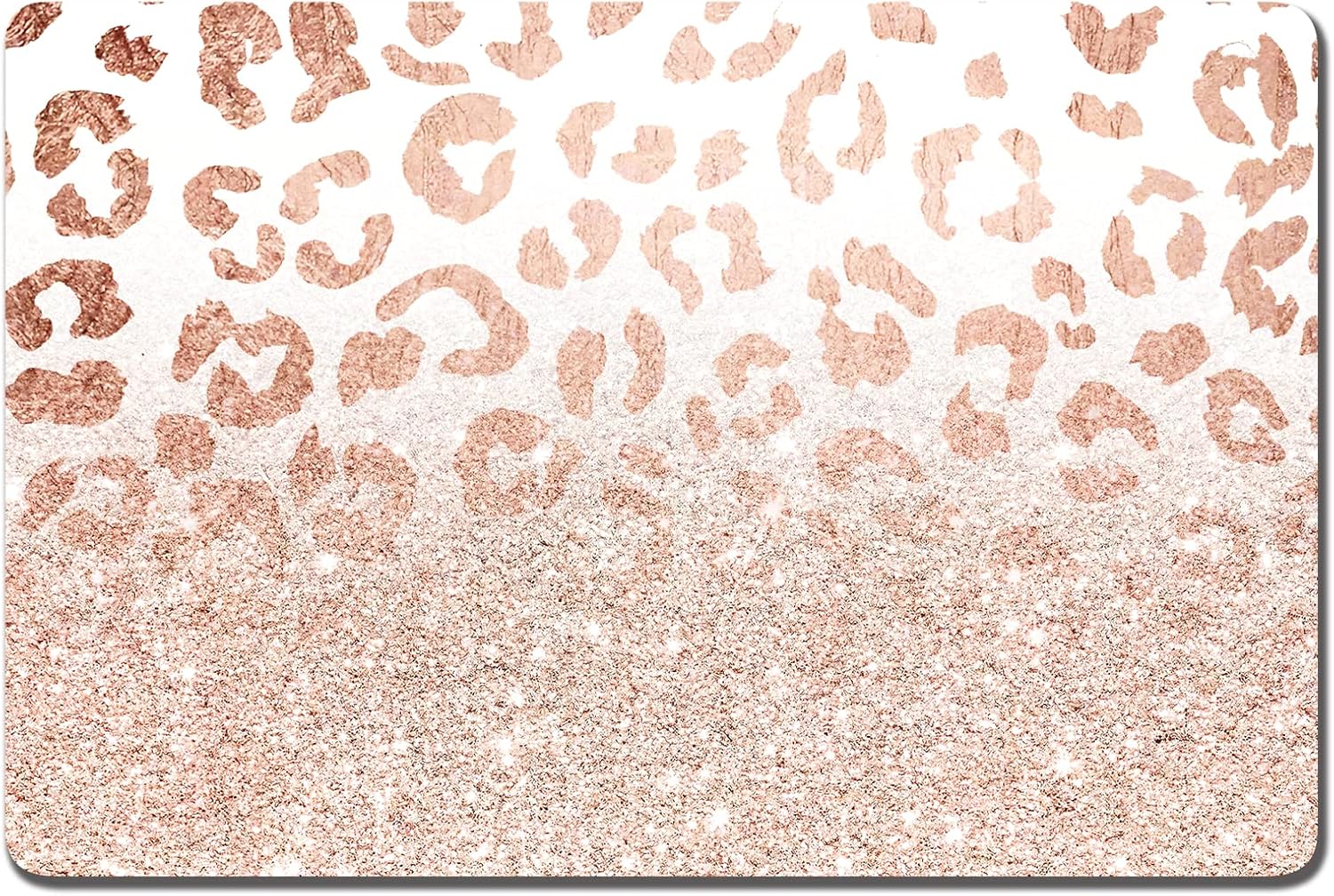 Rnivvi Dog Food Mat, 12" x 19" Leopard Absorbent Dog Cat Bowl Mat for Food and Water, Cute Anti-Slip Rubber Pet Feeding Rug Protect Floors, Puppy Placemat for Feeding & Watering Supplies, Rose