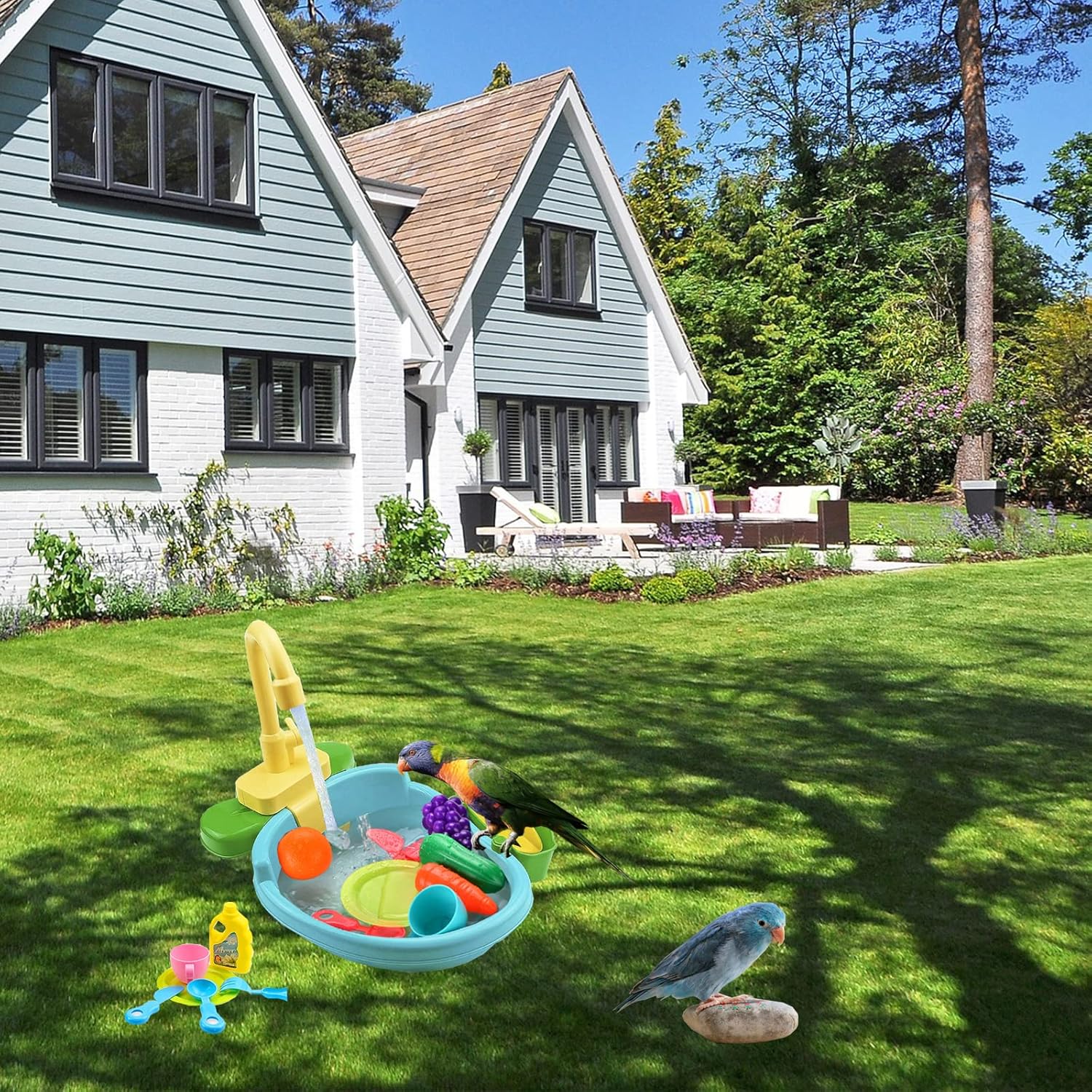 - 【 Pets and Children's Toys 】: The bird bath bathtub adopts an automatic faucet design and requires the installation of 2 AA batteries (not included), making it very easy to assemble and convenient to use. The sink can store various toys and small items, whether it's for children to play or for parrots/birds to take a bath.