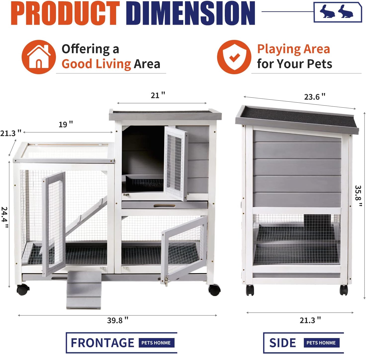 Rabbit Hutch, Indoor Rabbit Cage Two Story Bunny Hutch with Wheels Guinea Pig Cages with Removable No Leaking Tray, Ramp, Outdoor Pet House for Small Animals