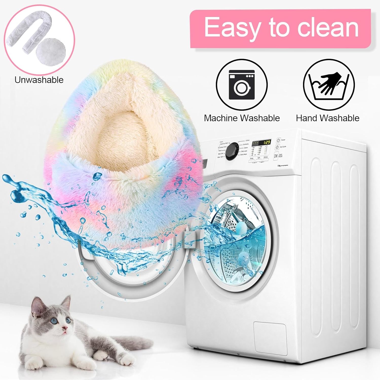 Calming Dog Beds & Cat Cave Bed with Hooded Cover,Removable Washable Round Beds for Small Medium Pets,Anti-Slip Faux Fur Fluffy Coved Bed for Improved Sleep,Fits up to 15/25 lbs(Colorful,S)