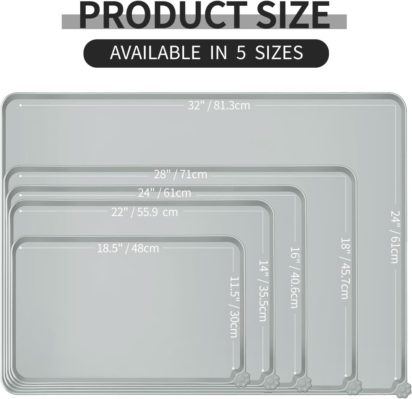 • Various sizes available: our pet mats come in 5 different sizes - 18.5" x 11.5", 22" x 14", 24" x 16", 28" x 18", and 32" x 24". Suitable for all kinds of pets, from puppies to large pets, choose the perfect size for your furry friends and avoid messy spills at mealtime