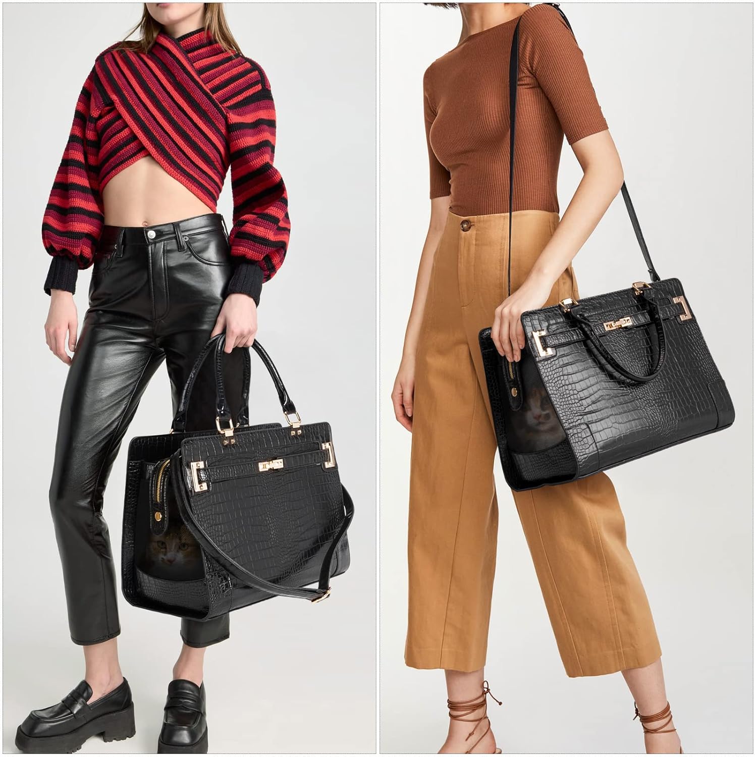 - ๐[ High-quality Material ] Our soft-sided pet purse is made of high quality smooth PU leather. No fade, no distortion, breathable, lightweight, washable and soft.Waterproof material inside keeps your bag dry and clean.