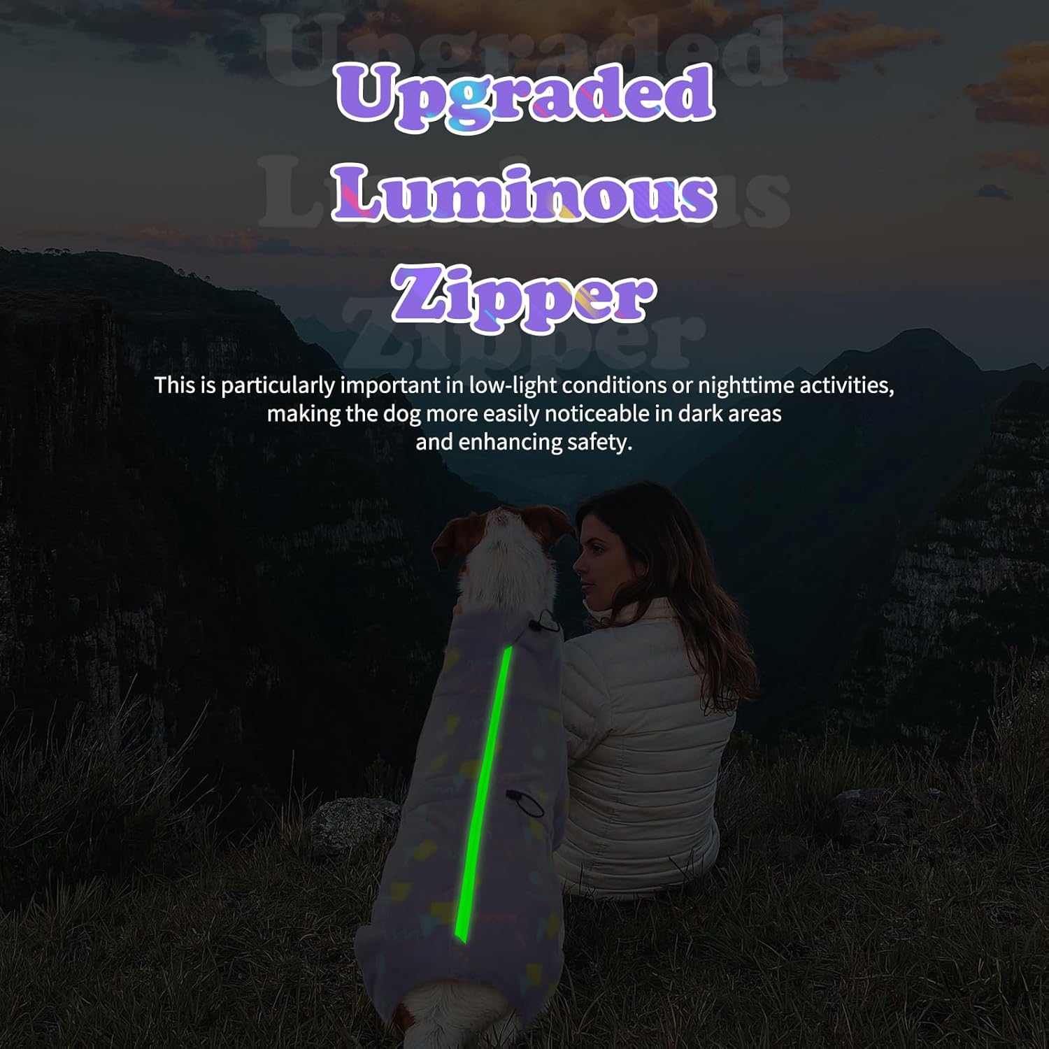 ROZKITCH Dog Pajamas with Zipper, Pet Windproof Warm Cold Weather Jacket Vest with Luminous Zipper, Jumpsuit Apparel Outfit Clothes for Small Medium Large Dog Geometry XL