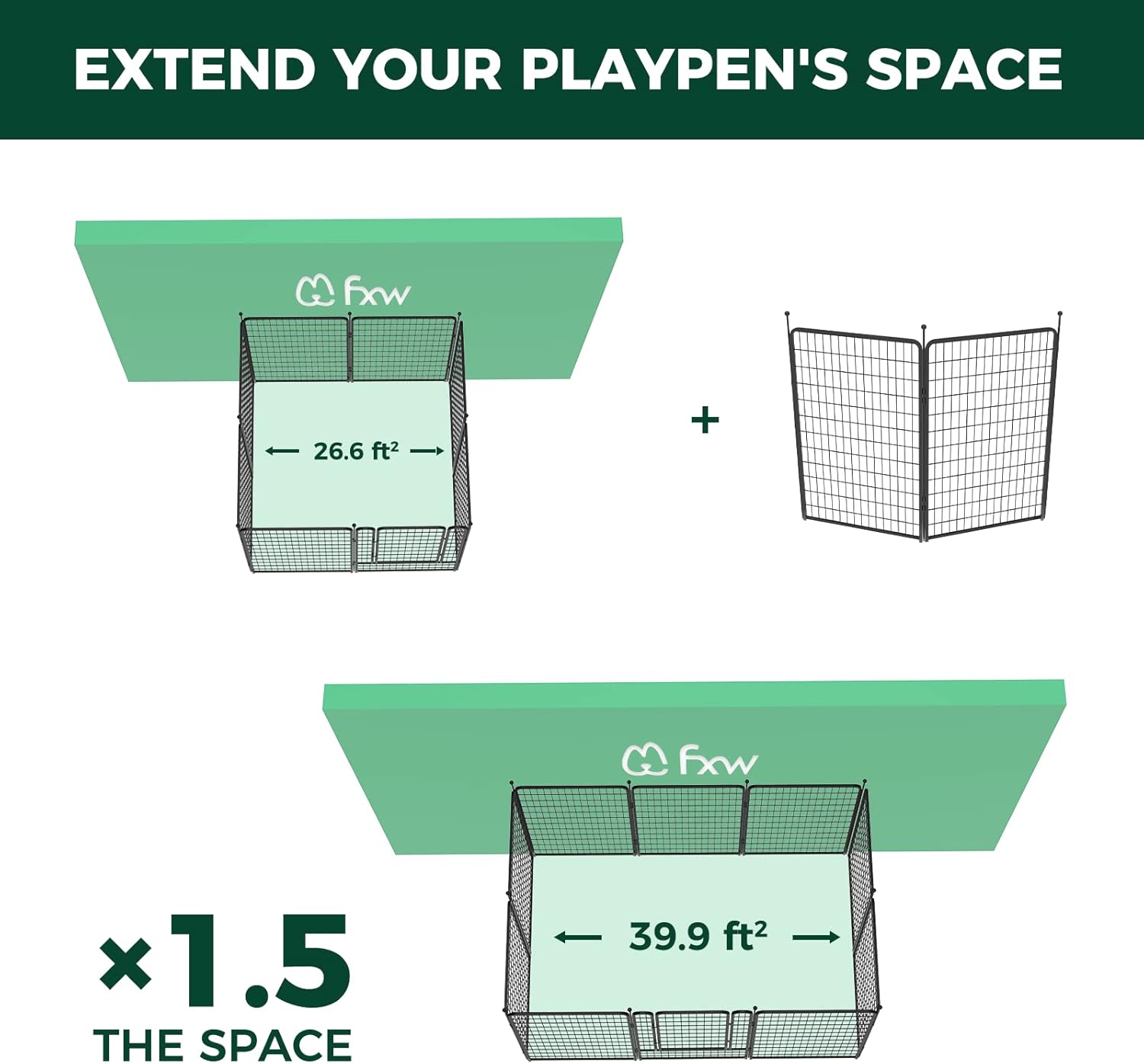 - A win-win solution: The FXW Dog Playpen is designed to bring a win-win solution to you and your lovely dog. Different from a narrow enclosure cage or kennel, the FXW dog pen provides a spacious semi-open activity area specifically for your dog. Your dog will have fun in its safe and sturdy kingdom. Meanwhile, you can take a real break and be truly relaxed without worrying about your beloved pet. Fun, Relaxation and Well-being is the orientation of the FXW team.