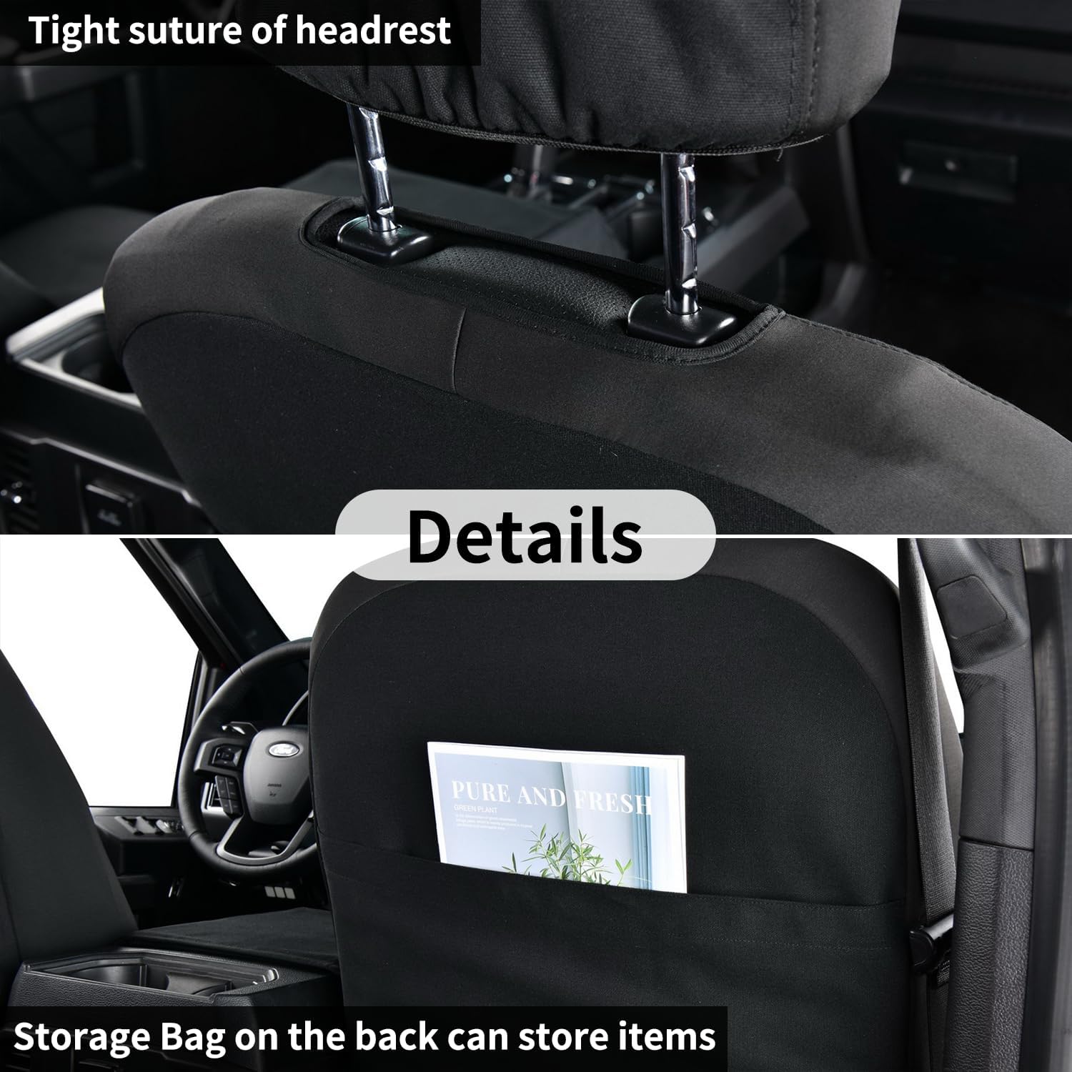 - Customized Truck Seat Covers: Each pack comes 2 front seat covers and a console cover(headrest cap included), compatible with airbag, seat belt cutouts, headrests and console, to offer perfect protection for your vehicle. Car Fitment-2015-2025 F150 SuperCrew 2017-2025 F250 F350 F450 Crew Cab