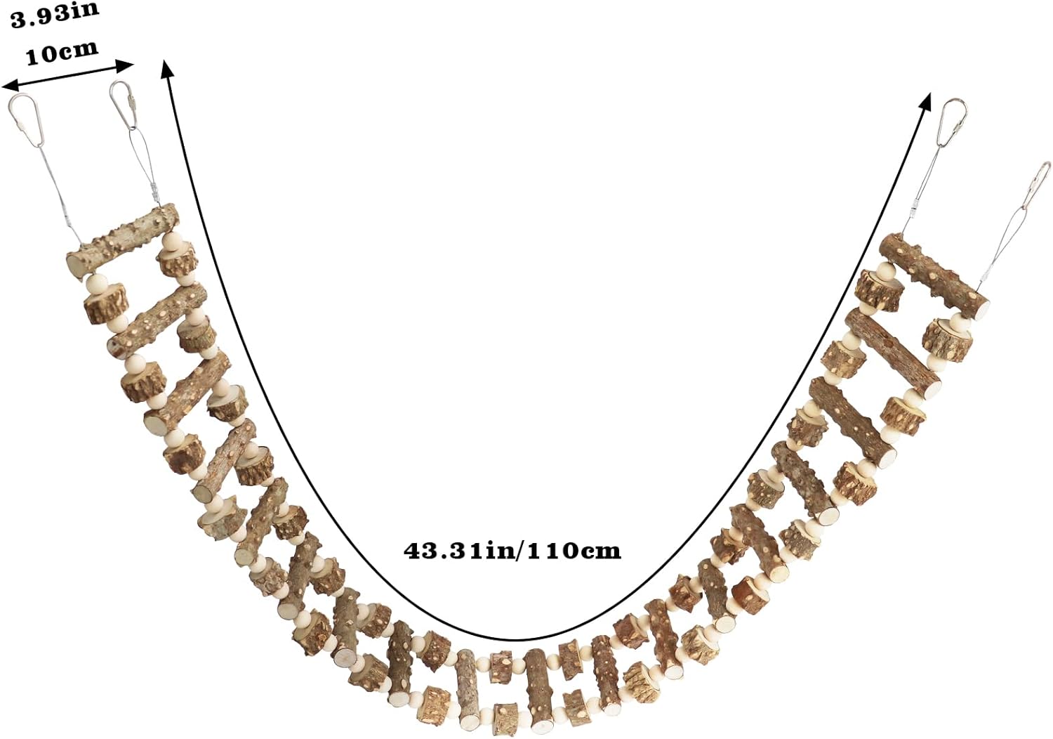 - Easy to Install: The length of this bird ladder toy is about 43.31"/110 cm, and the weight is about 1.5 lb/0.7 Kg. There are two metal buckles at each end, which can be easily and safely installed anywhere. Our small animal bending bridge is not only suitable for all kinds of small animal cage accessories but also suitable for hanging in the garden woods for birds, squirrels, and other small animals to play and stand.