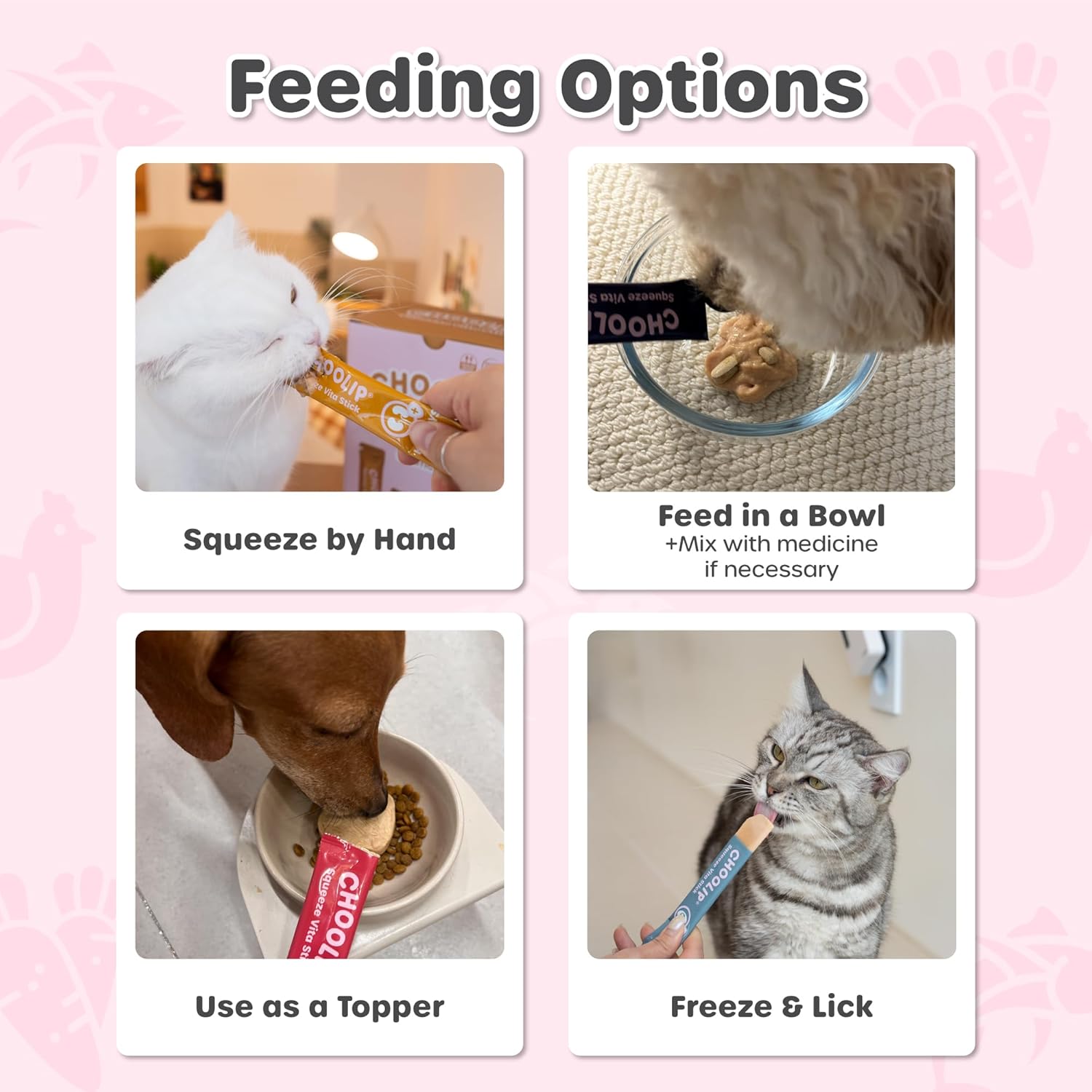 - TREATS FOR CATS AND DOGS: Why not smear their favorite lick mat in our nutrient dense paste? Dogs love it! And, our high protein, low calorie, multivitamin dog treats and cat treats have up to 11% crude protein and 81-84% moisture per serving. A wet cat food and dog food supplement, 1-3x a day