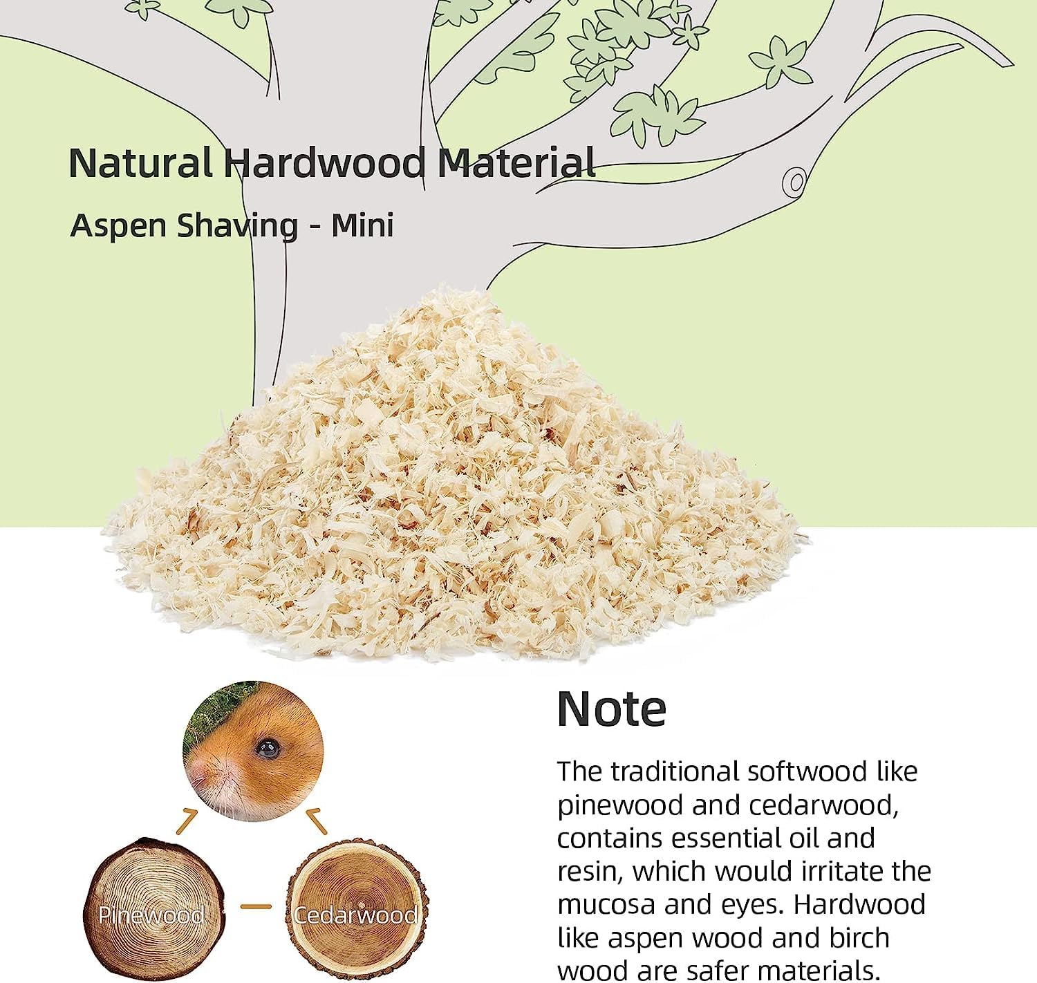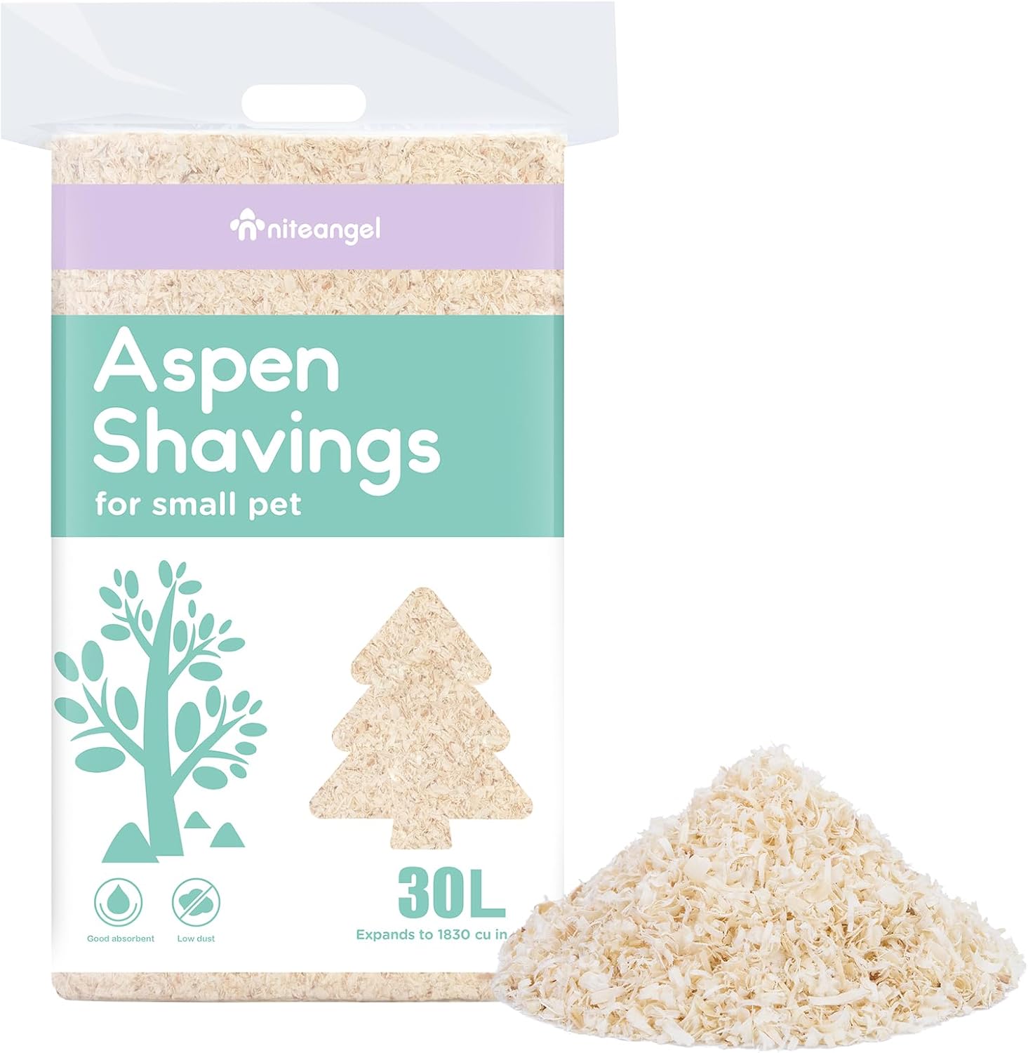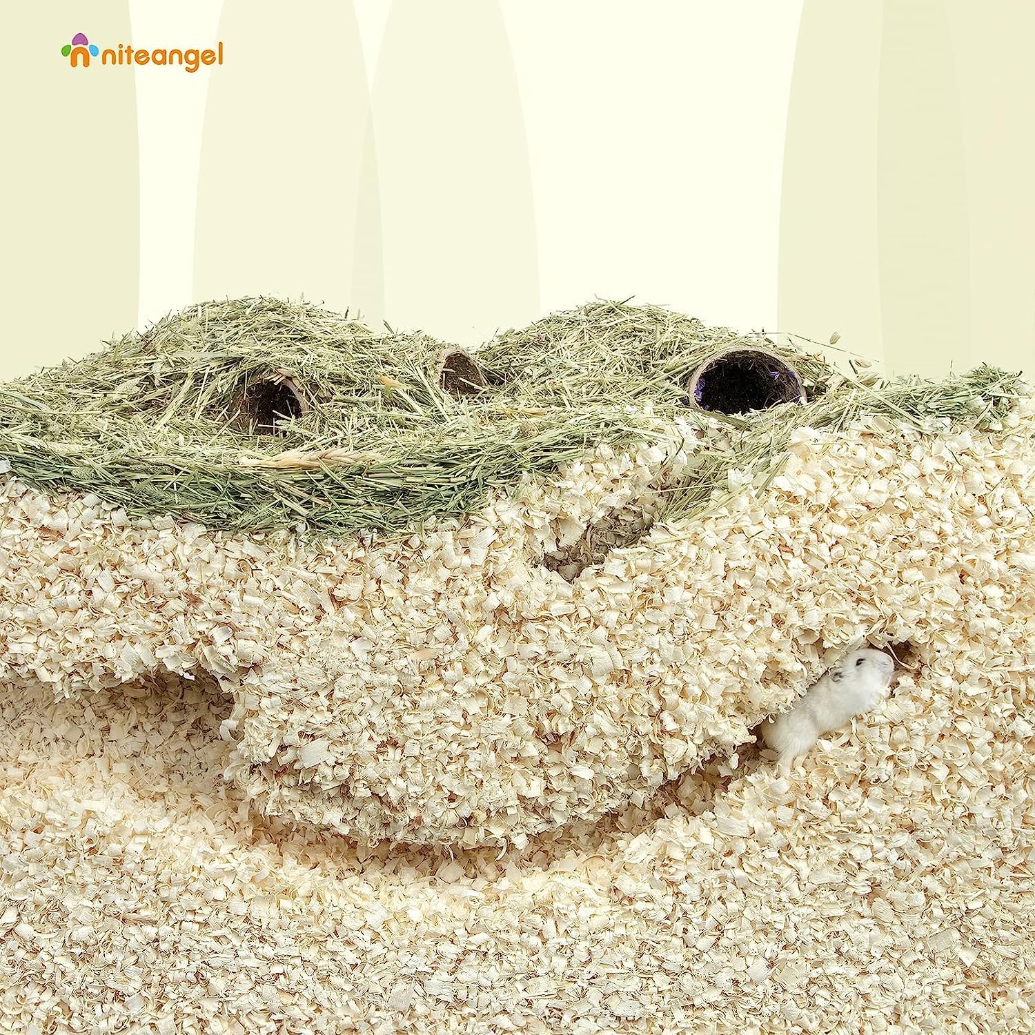 - [Soft Texture & More Comfortable] Niteangel tiny pet aspen bedding is made from natural Aspen wood and safe for small pets. The soft fluffy texture allows your critters to play freely on the aspen shavings bedding. The small pet bedding is not only good at absorbing the annoying smell of the cage, but also gives the hamster a natural and comfortable habitat.